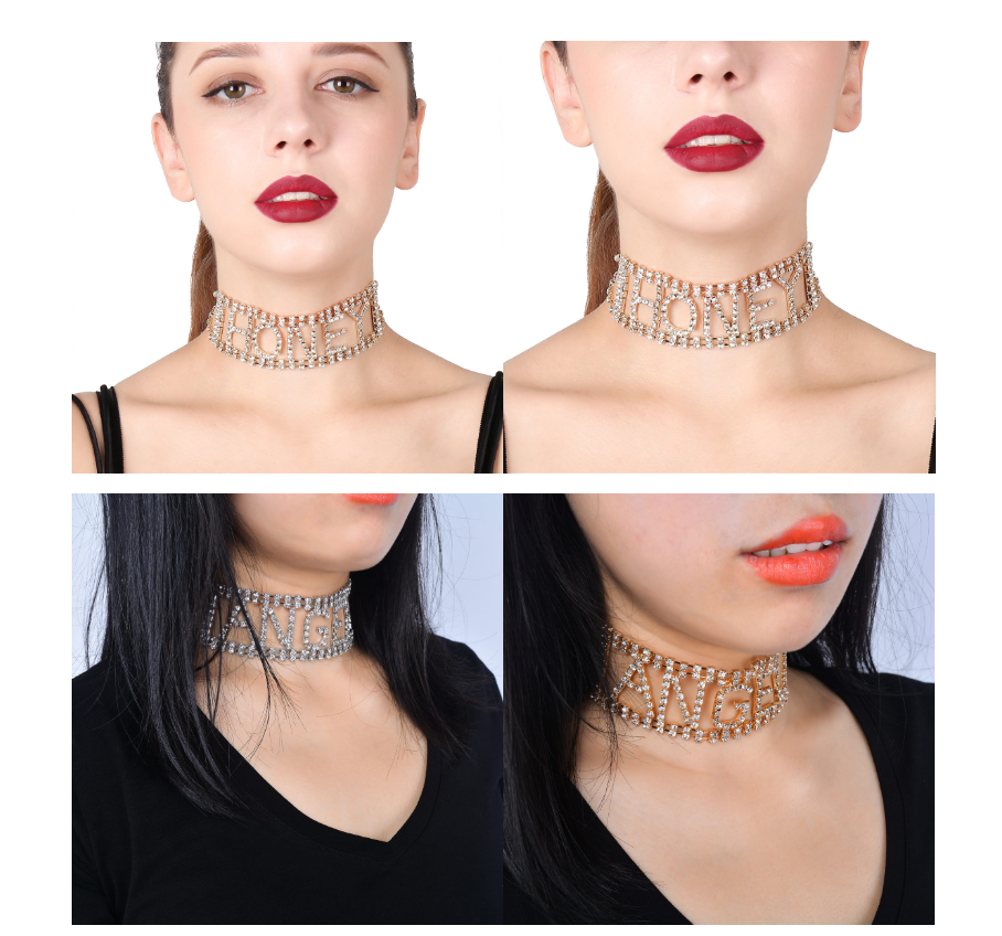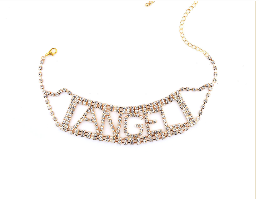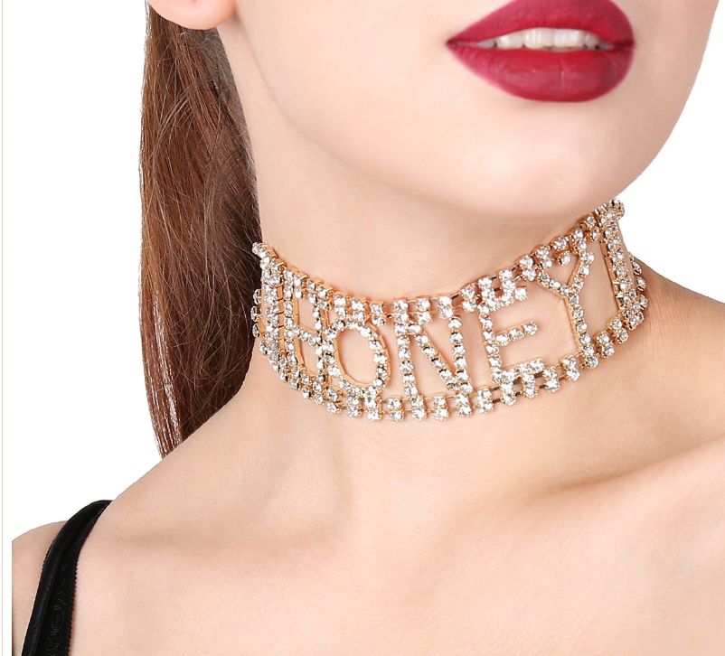 Punk Exaggerated Super Nightclub Items With Diamonds Rhinestone Letter Necklace Chain Collar
