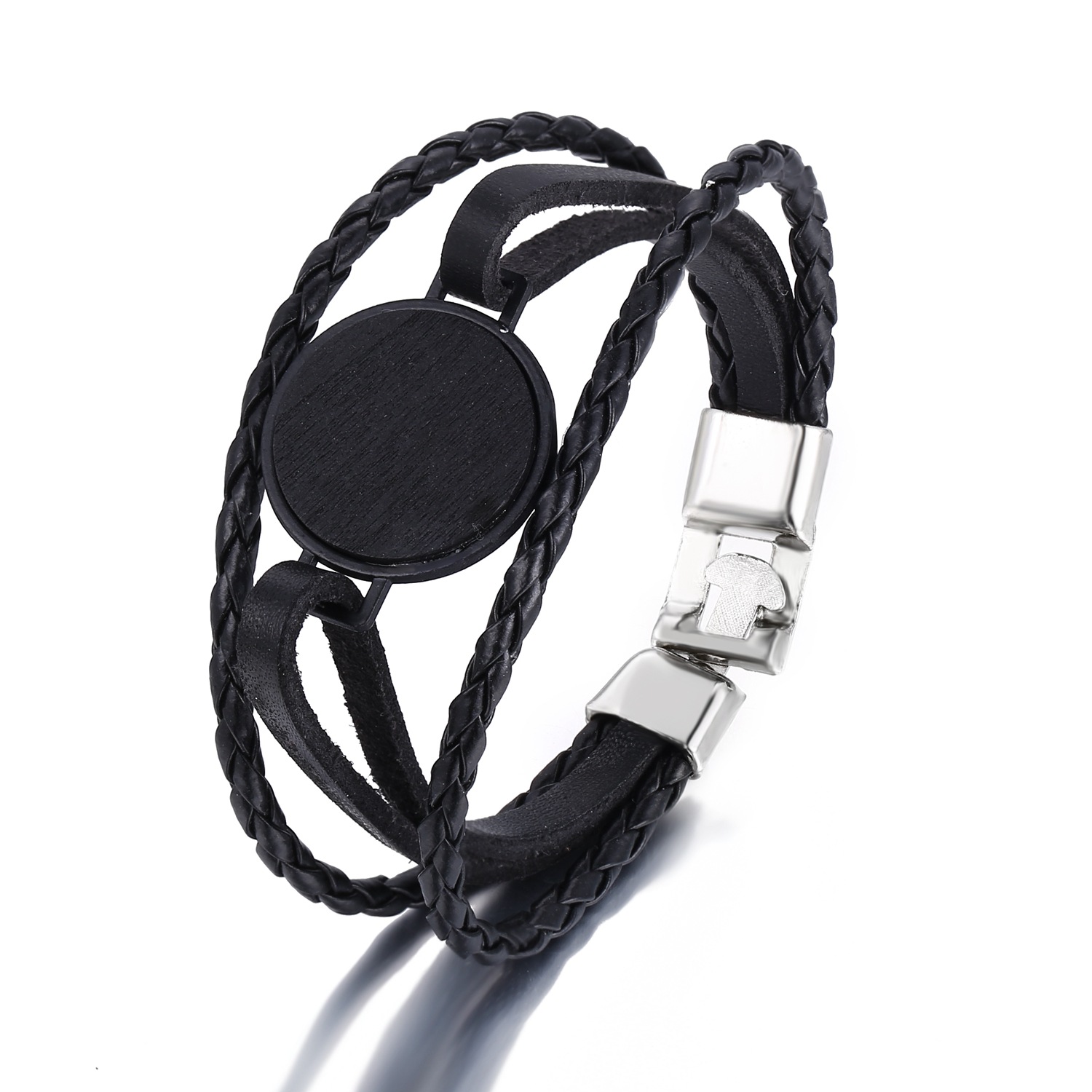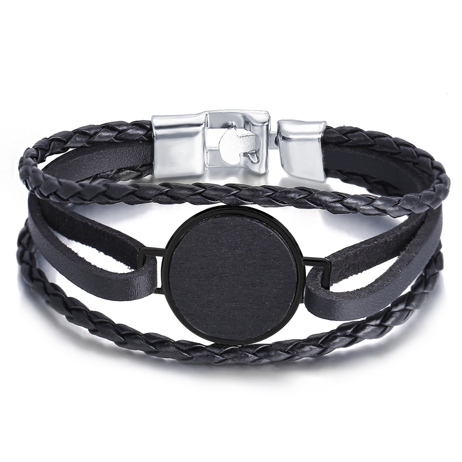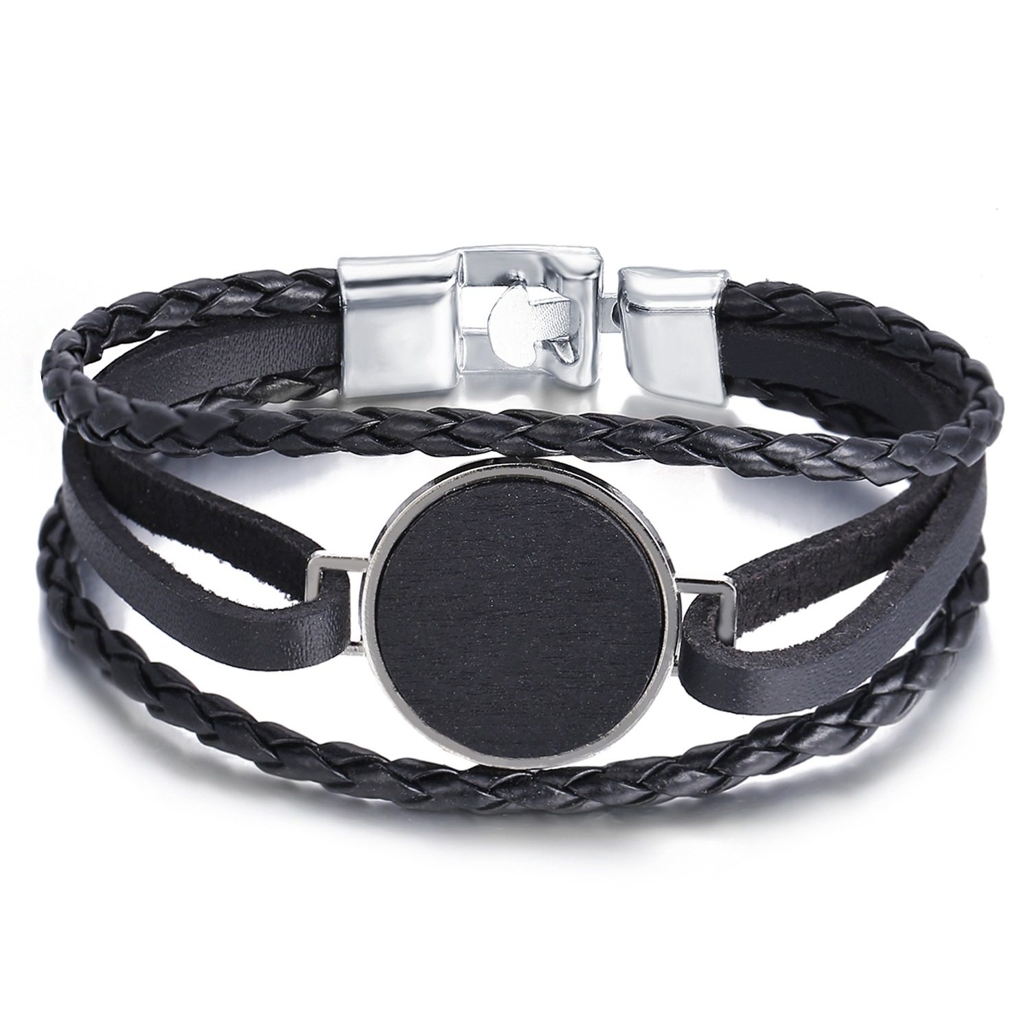 Han Zhishang European and American silver buckle round faux leather bracelet creative retro simple black men's bracelet
