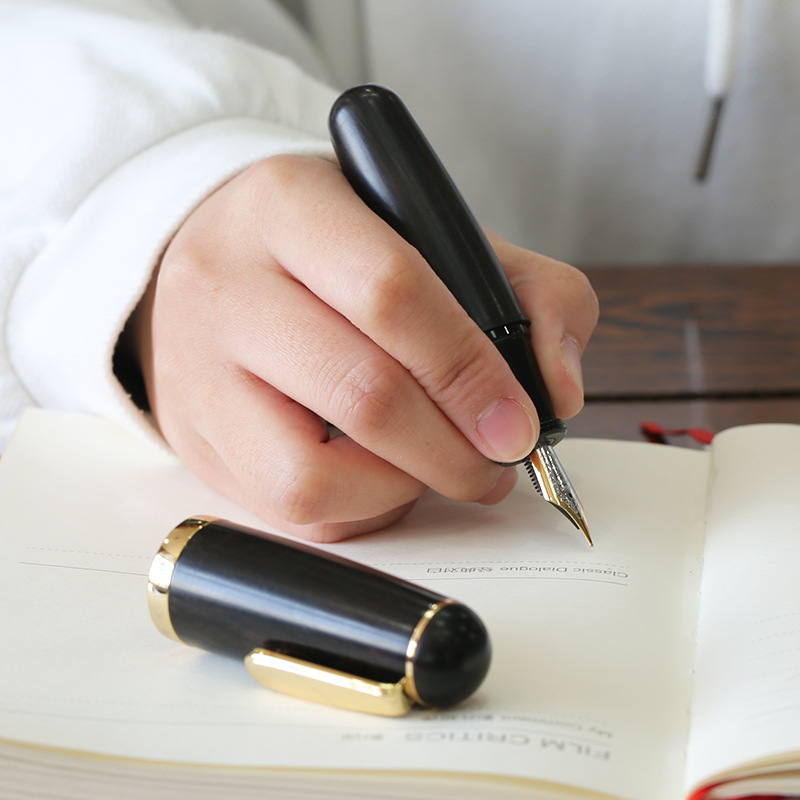 Solid Wood Ink Pen Fine Tip Cute Chubby Short Pen