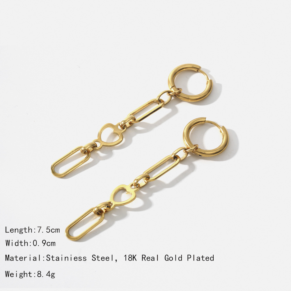 Stainless Steel 18K Furnace Real Gold Plating Hollow Heart-shaped Earrings
