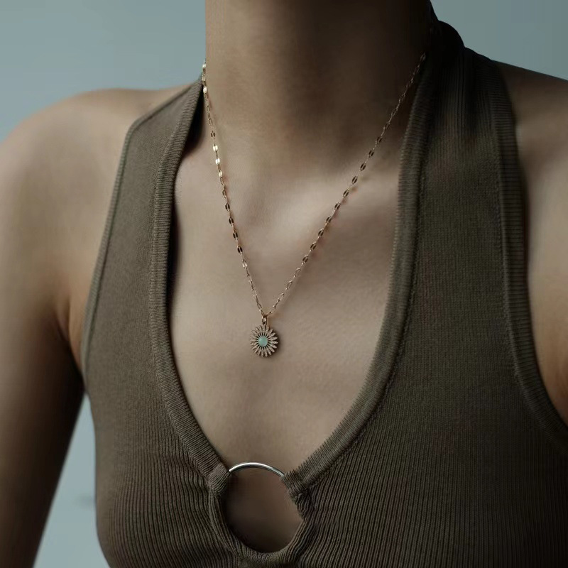 Product information:Color: sunflower necklace Chain style: Regular chain Material: Copper Shape: Flower Popular elements: Triangle and line Perimeter: 21cm (inclusive)-50cm (inclusive)