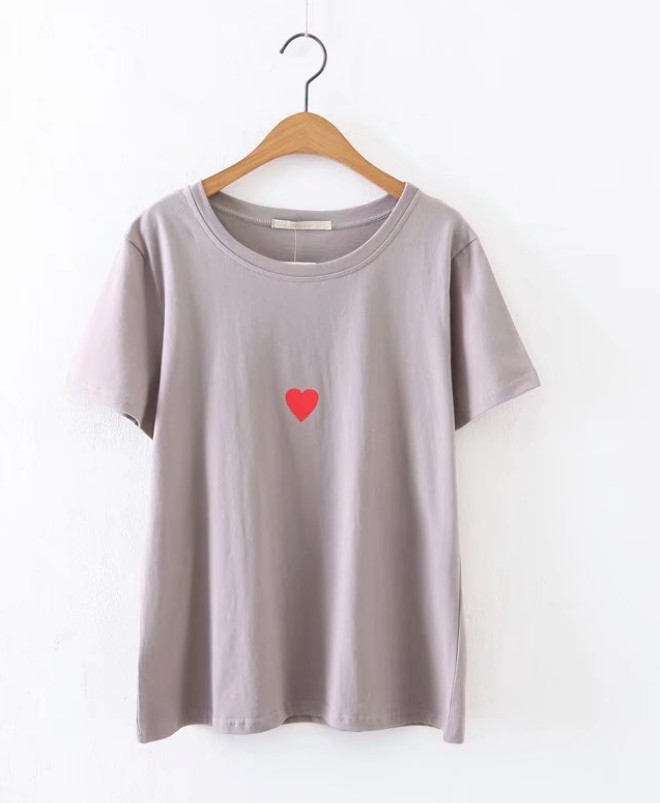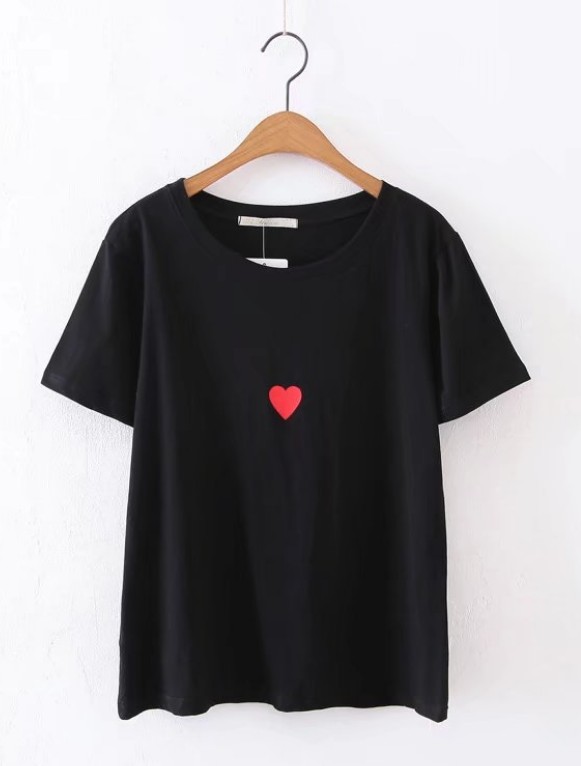 Small neckline, heart print, short sleeve T-shirt
