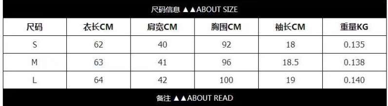 size  length cm shoulder cmbust  cm  cuff cm weight  KG