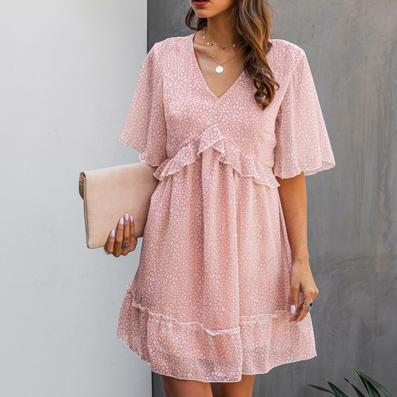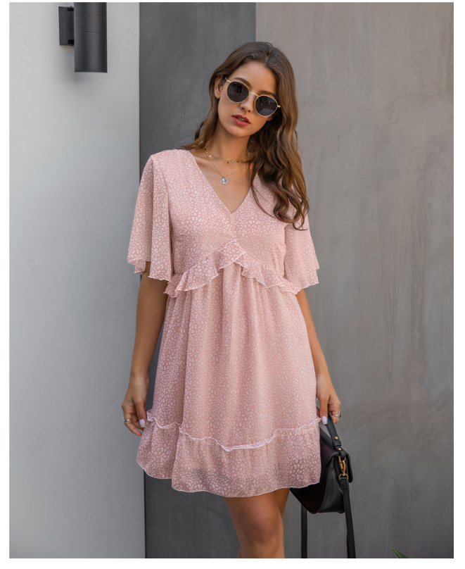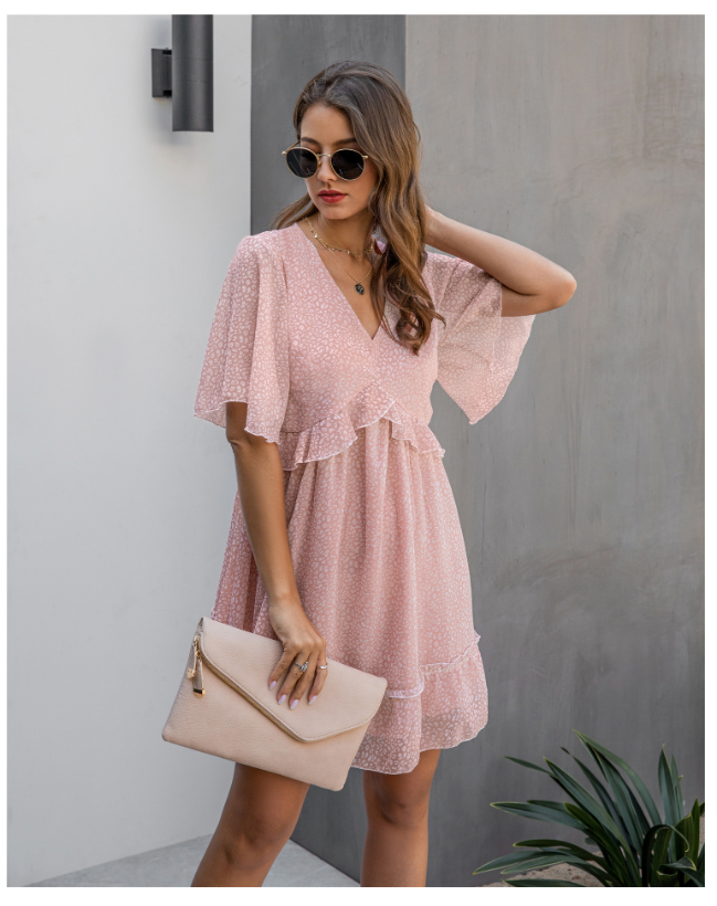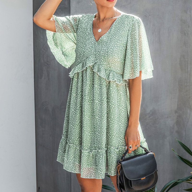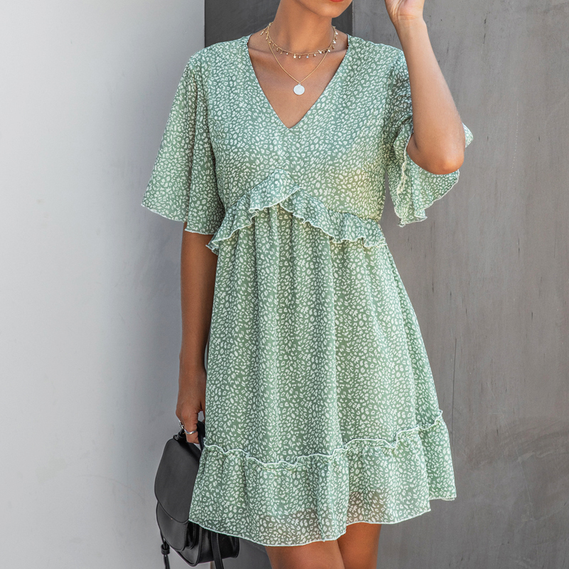 Printed V-neck Loose Ruffles dress