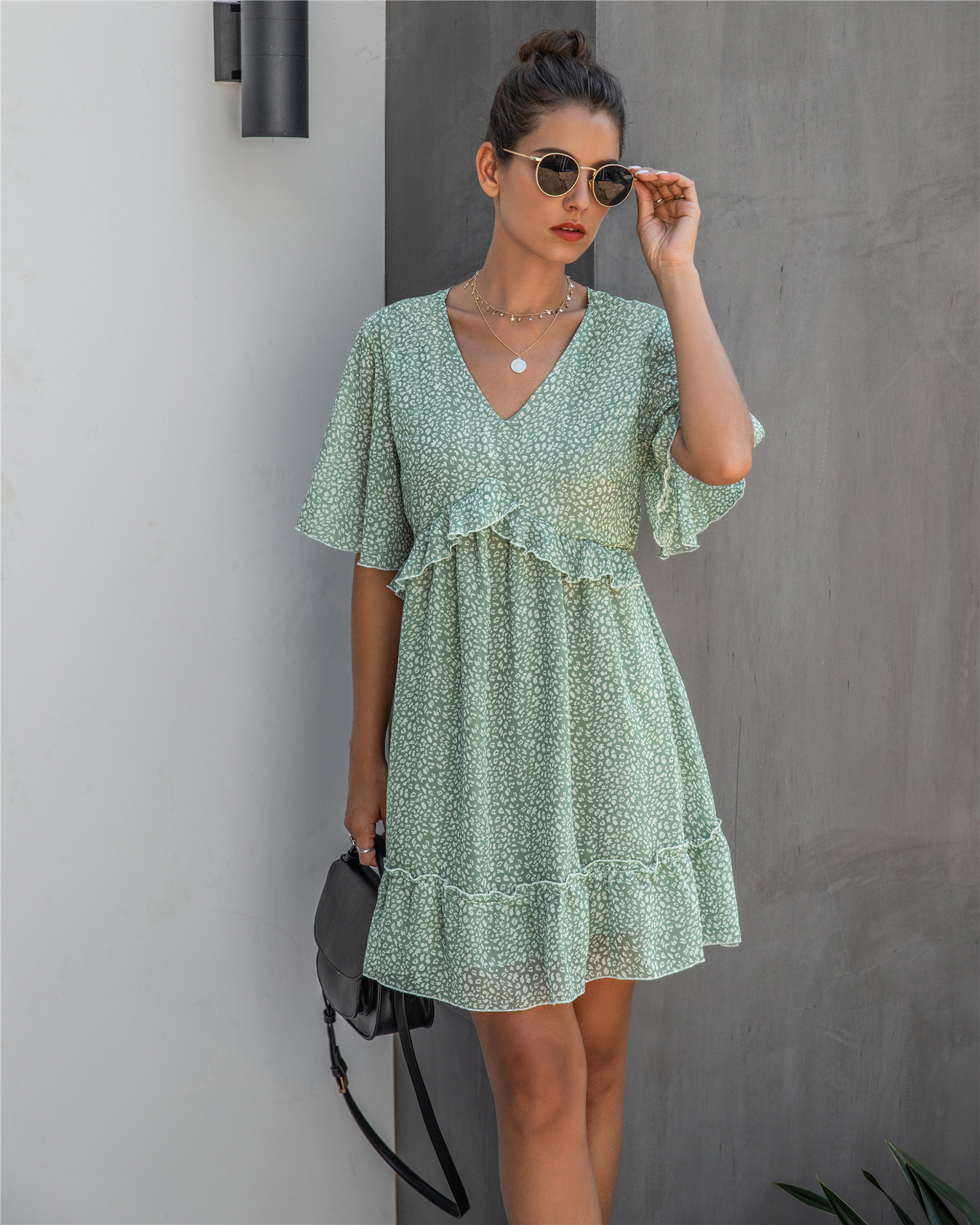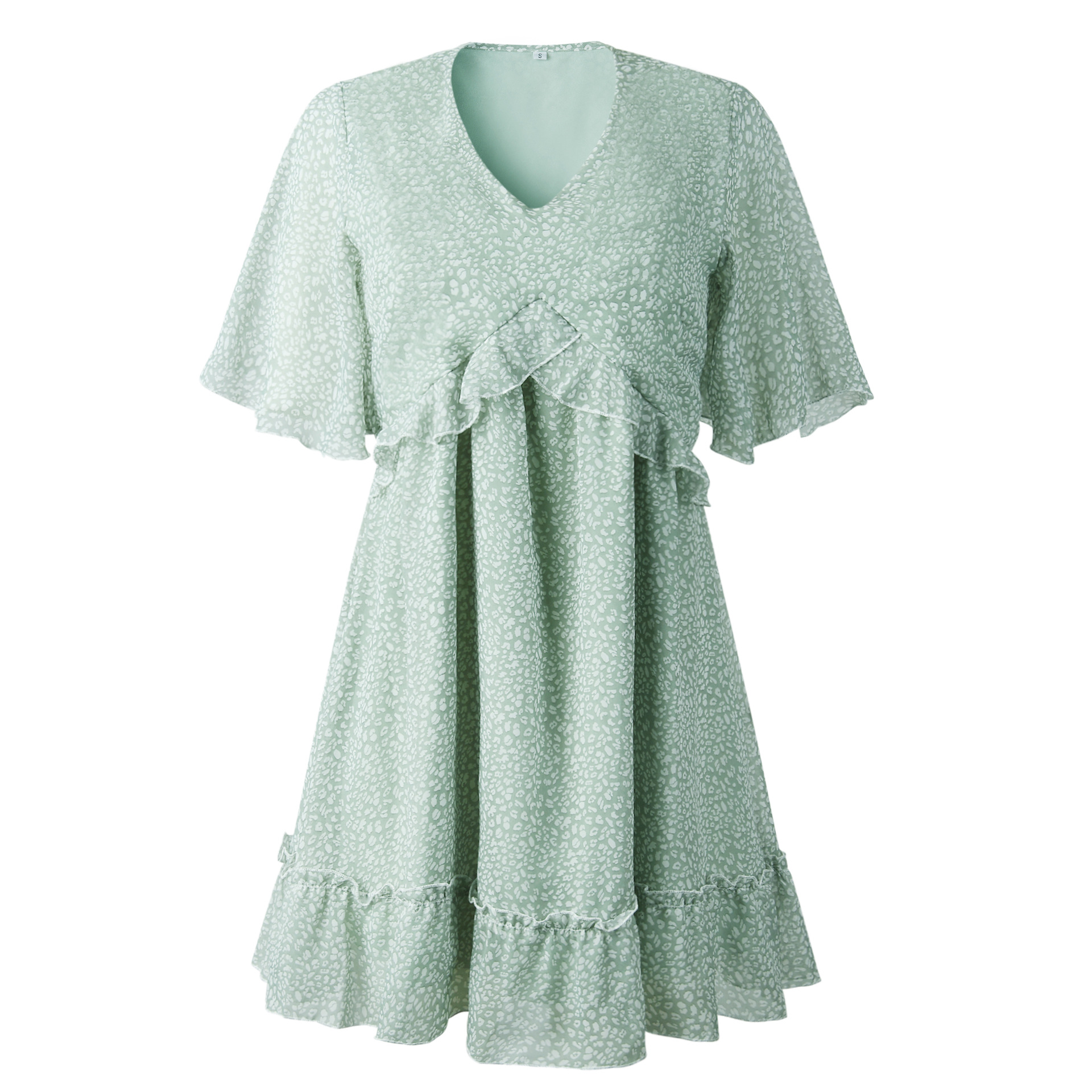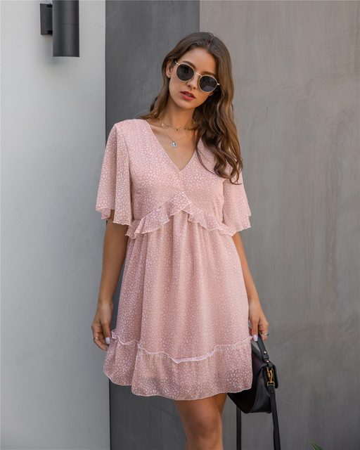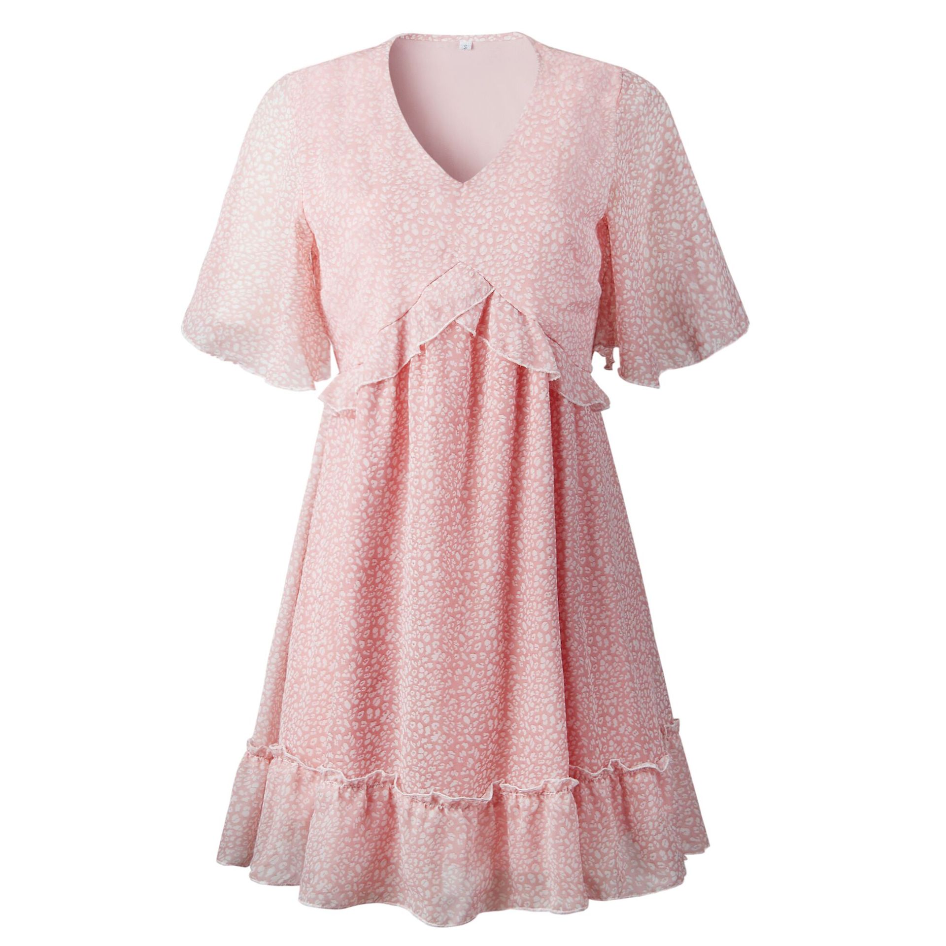 Printed V-neck Loose Ruffles dress