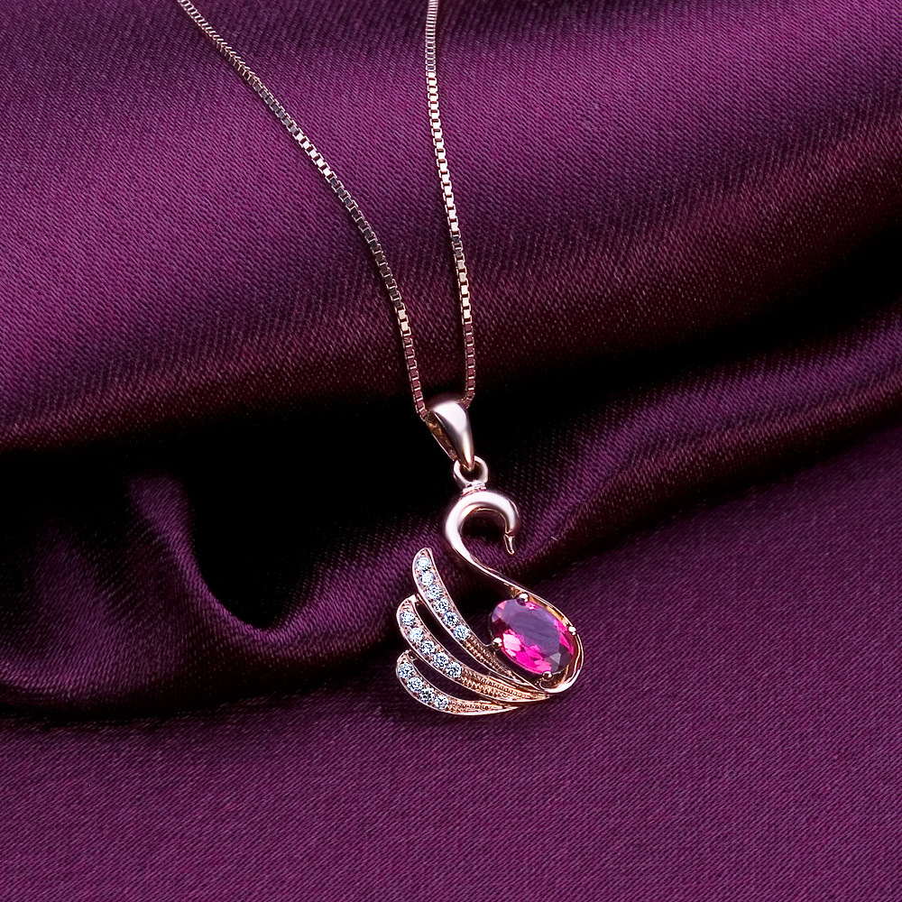 Swan Necklace 925 Silver Rose Gold Plated Pendant Color Treasure Necklace