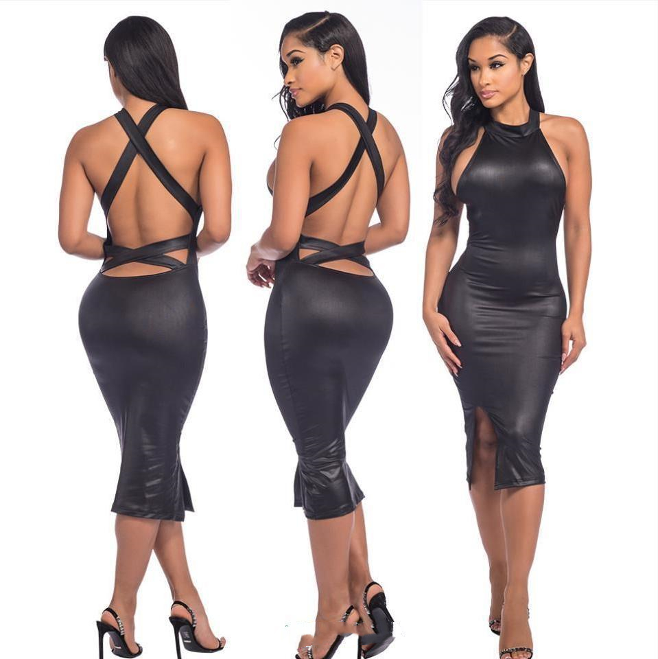 Color: Blind box, European and American style dress! , High-quality PU leather fabric! ,black