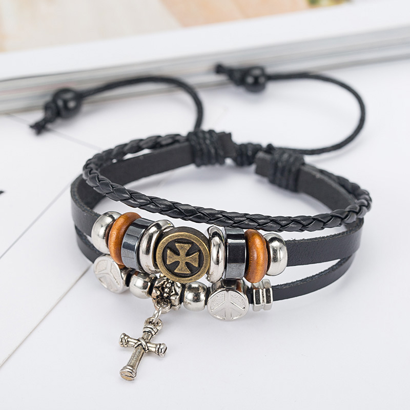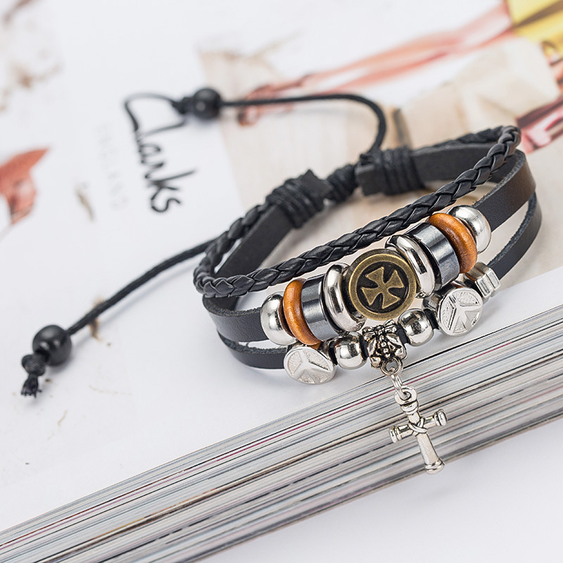 Product information:Style: European and AmericanMaterial: leatherType: BraceletStyle: UnisexStyle: CrossPackaging: Individually packedPacking list:Bracelet x1