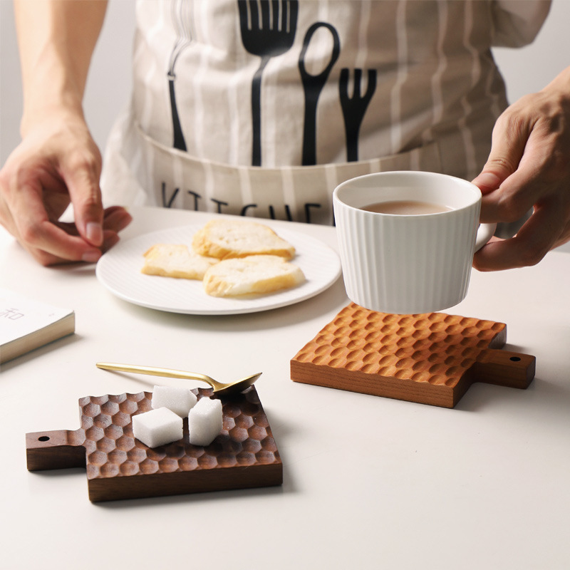 Material: woodPattern: OthersColour: Coaster - black walnut, Coaster - cherryShape: SquareProduct quality grade: qualified productStyle: Japanese