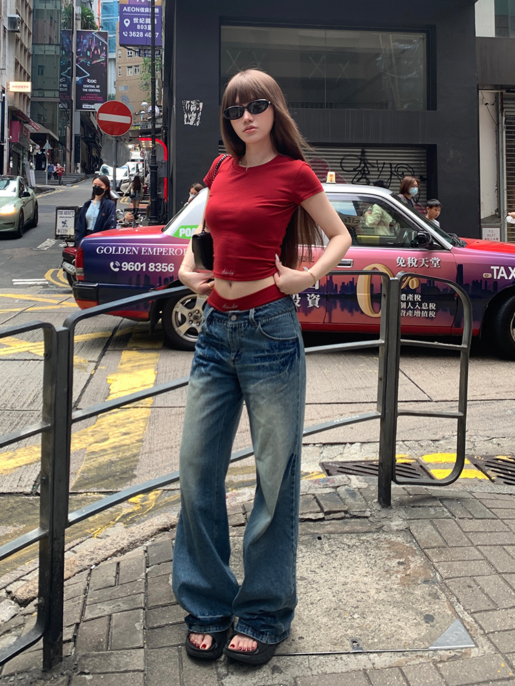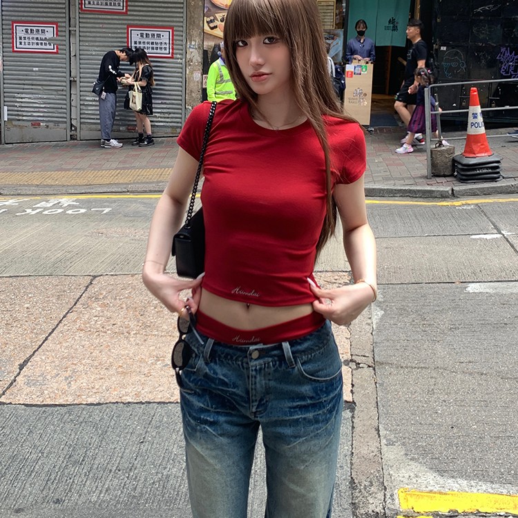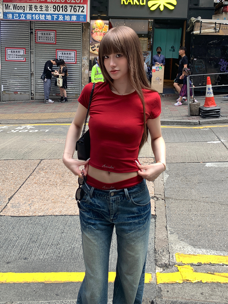 Main color: red short sleeve, red shorts