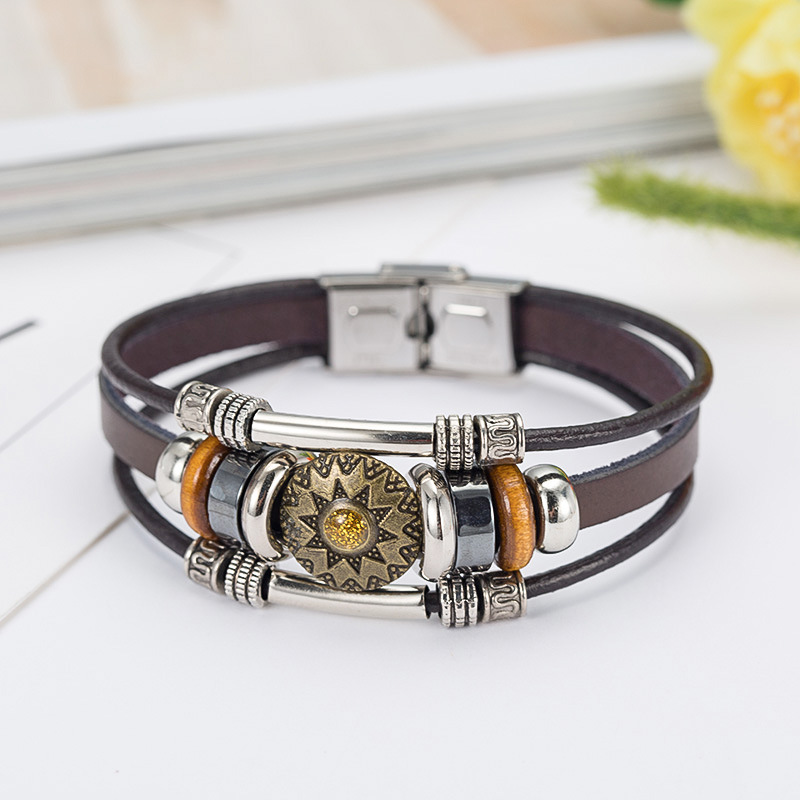 Product information:Material: leatherStyle: VintageStyle: UnisexStyle: FlowersPackaging: Individually packedInlaid material: not inlaidSize Information:Size: Length 19CM, Width 1CMPacking list:Bracelet x1