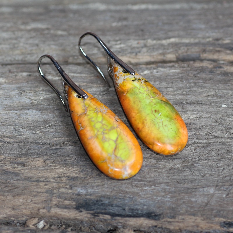 Ladies' earrings, handmade and shaped like water drops