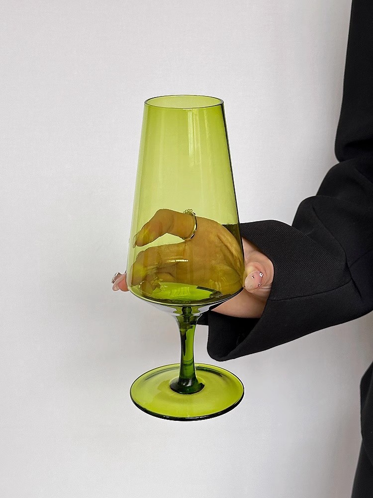 Product information:Style type: mild luxury retro Color: vintage green wine glass Material: Glass Capacity: 301-400ml Import or not: no Category: Wine Glass