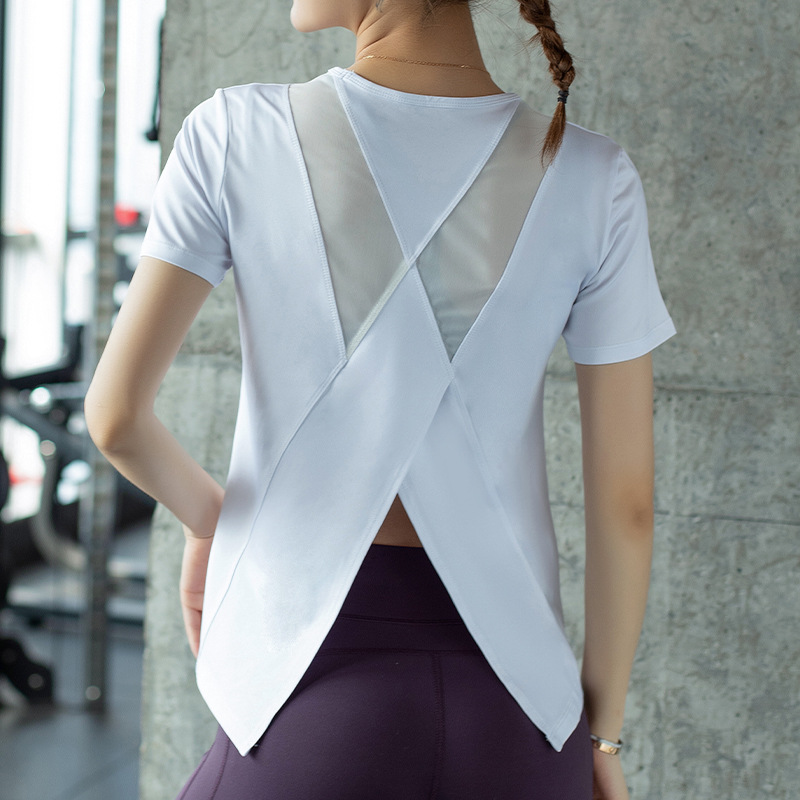 Color: Net yarn back cross short sleeve-pink, net yarn back cross short sleeve-gray, net yarn back cross short sleeve-white, net yarn back cross short sleeve-black
