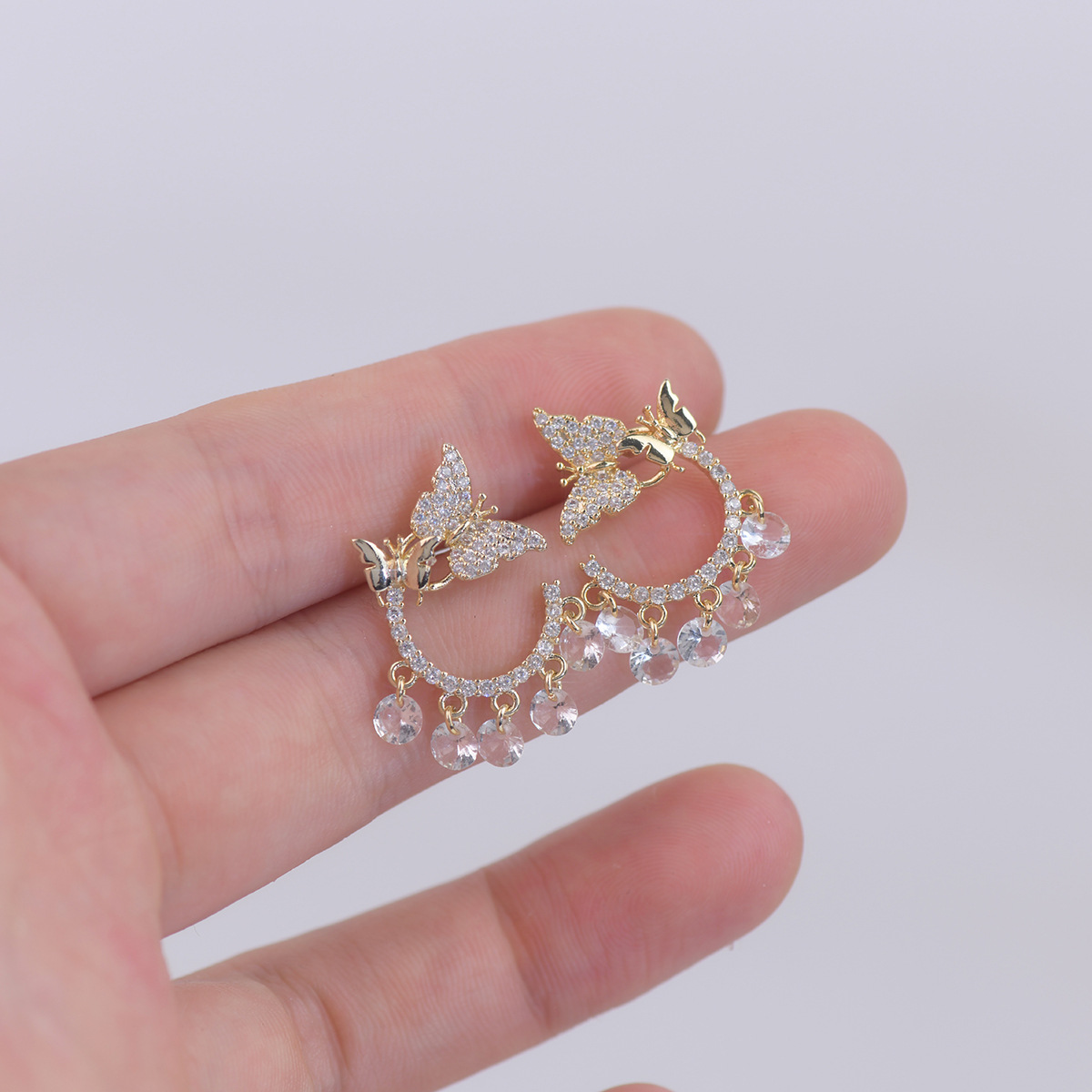 Style: Korean versionMaterial: metalTreatment process: electroplatingType: ear studStyle: WomenShape: butterflyColor: butterfly tassel zircon earrings