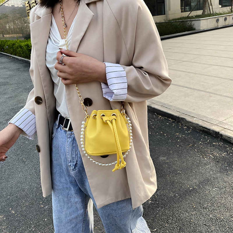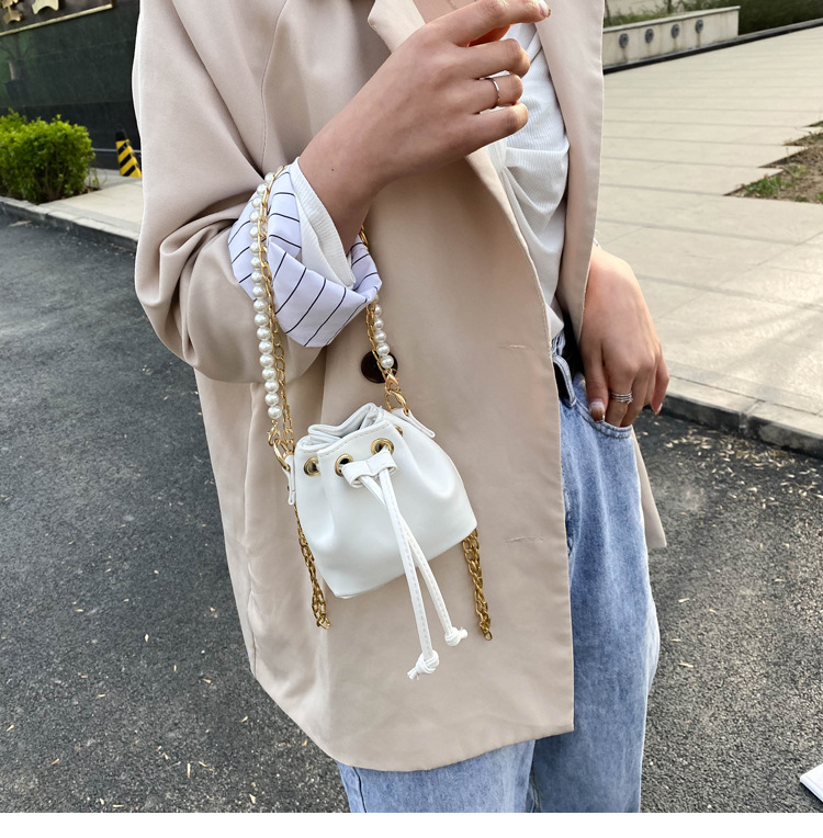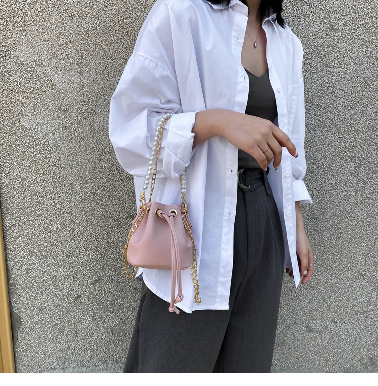 Style: Women's Messenger BagFabric texture: PUBag shape: bucket typeLuggage trend style: chain bagOpening method: withdrawingProcessing methods: soft surface Hardness: SoftCarrying parts: chain handle