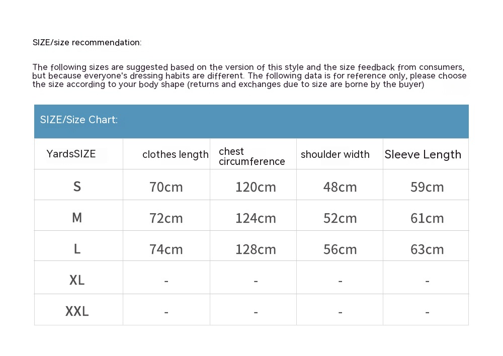 1. Asian sizes are 1 to 2 sizes smaller than European and American people. Choose the larger size if your size between two sizes. Please allow 2-3cm differences due to manual measurement. 2. Please check the size chart carefully before you buy the item, if you don't know how to choose size, please contact our customer service. 3.As you know, the different computers display colors differently, the color of the actual item may vary slightly from the following images.