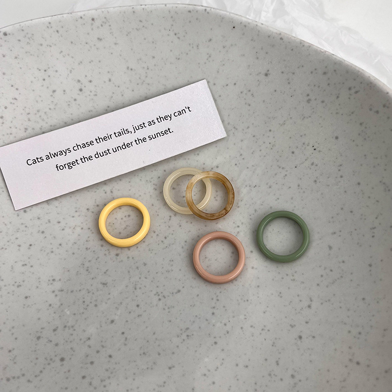 Type: ring, ringMaterial: AcrylicStyle: WomenTessellated materials: unmixedSize: inner diameter about 17mmColor: A light color five piece set, B dark color five piece set