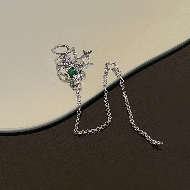 Material: Alloy / Silver Plated / Gold PlatedShape: geometricTreatment process: electroplatingColor: Emerald Tassel Ear Cuff (Right Ear)