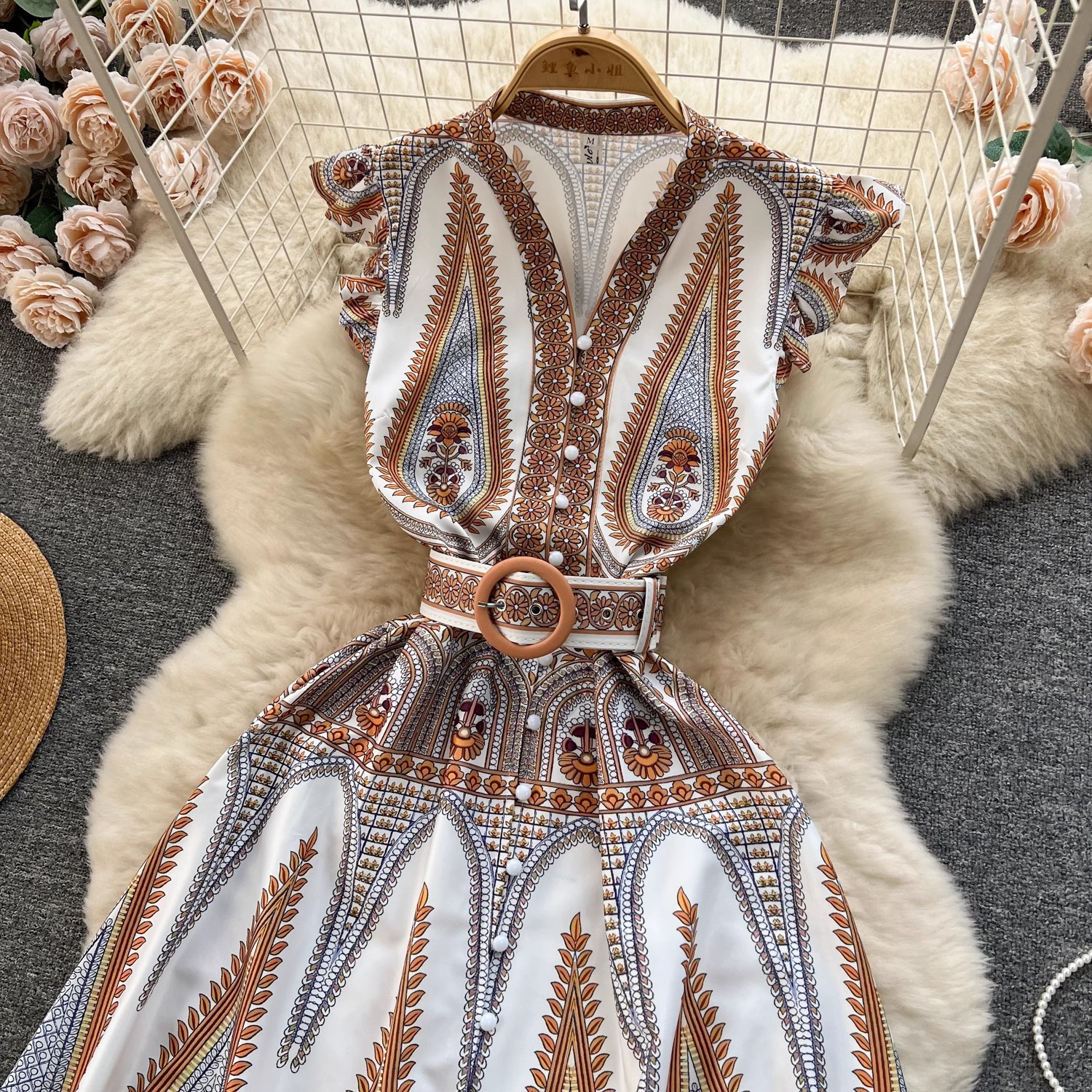 Product information: Skirt type: A- line skirt Color: khaki Waist type: high waist Size: S,M,L,XL,XXL Main fabric composition: Polyester (polyester fiber) Skirt Category: Dress Style: retro style