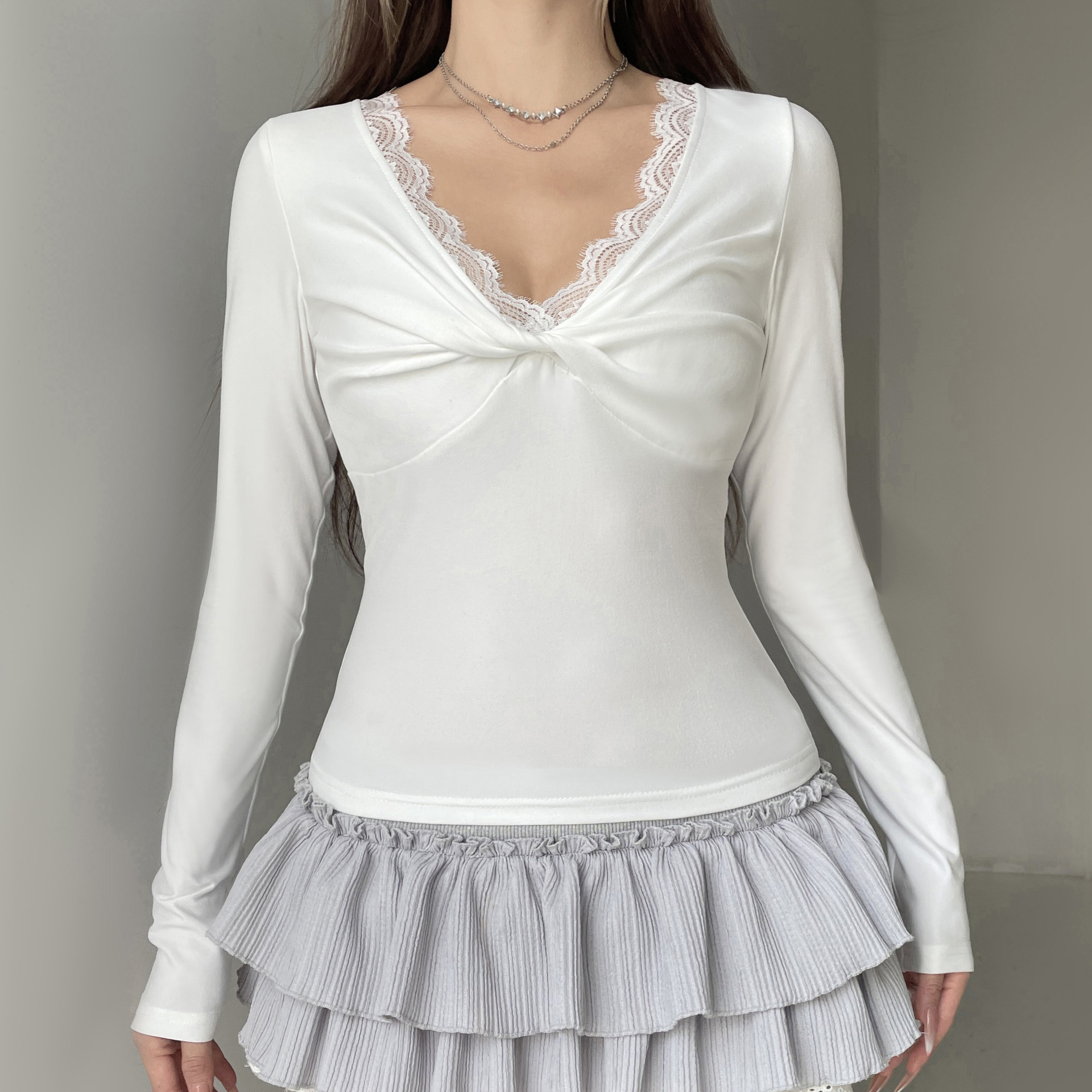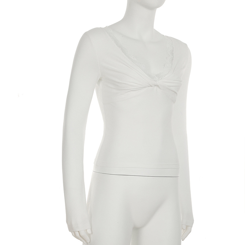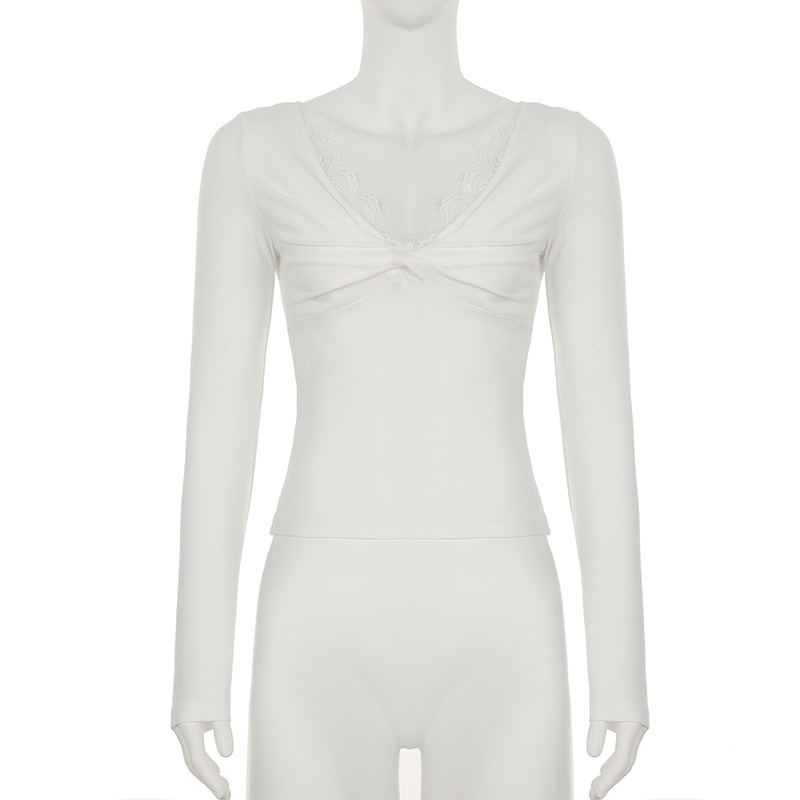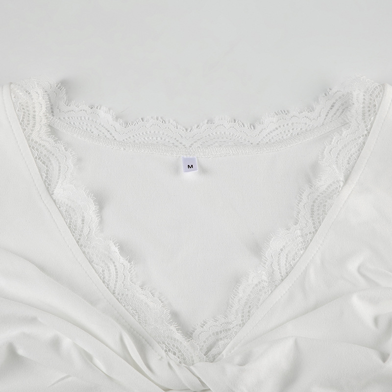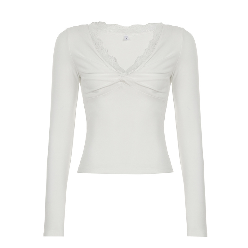 Product information: Color: White Size: S,M,L Version: slim fit Style type: fresh and sweet Popular elements: twisted pleated lace Style: pullover Fabric name: milk silk sanding Main fabric composition: Polyester Style: Gentle