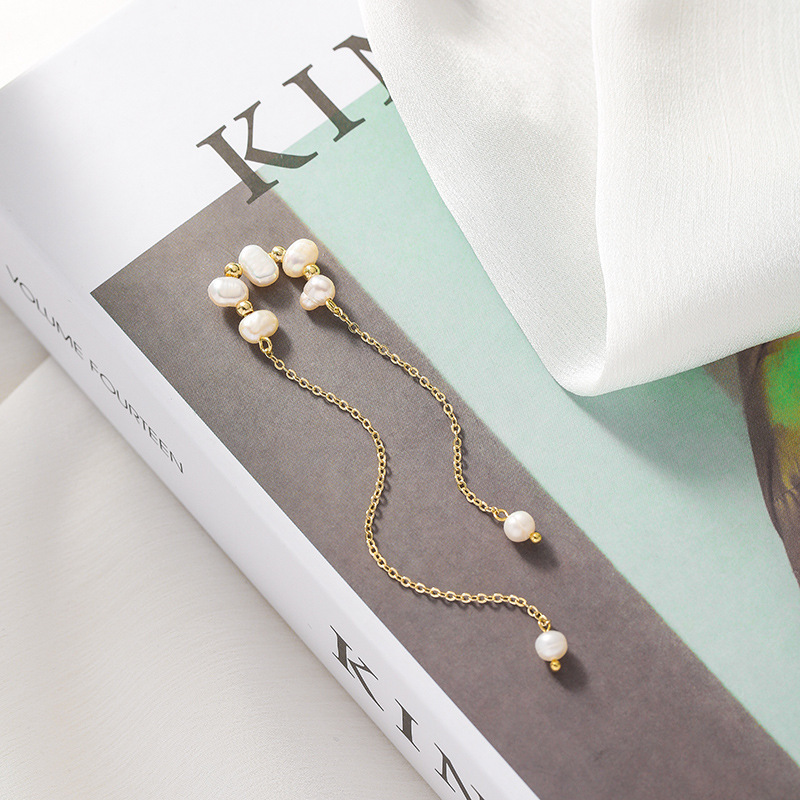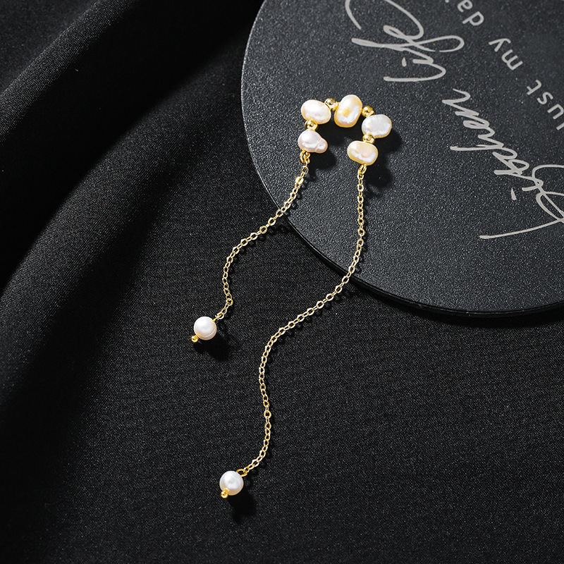 Natural Shaped Long Tassel Pearl Ear Bone Clip