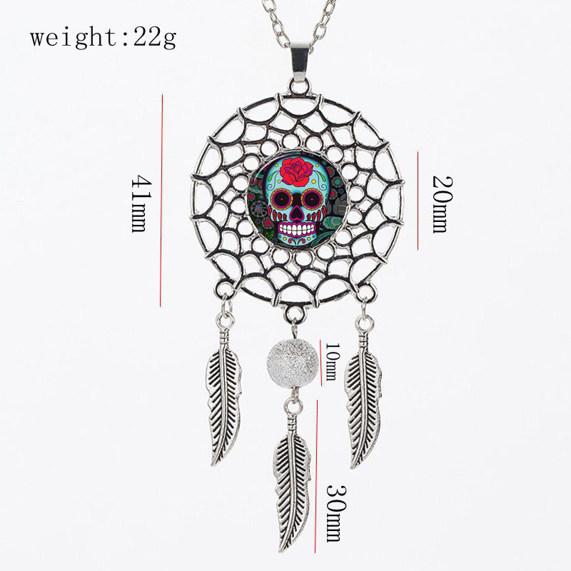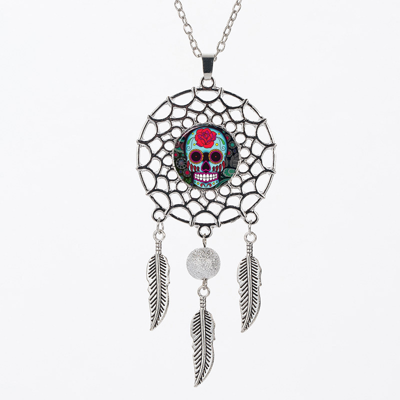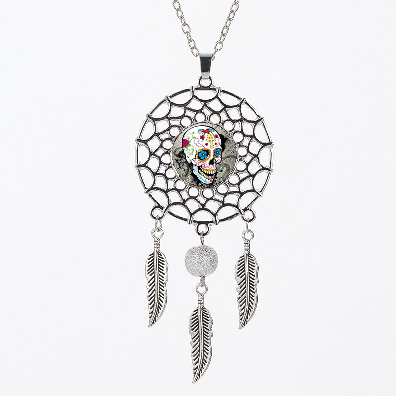 Sugar Skull Dreamcatcher Necklace Halloween Jewelry Gift