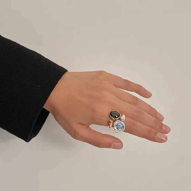 Type: Live MouthMaterial: CopperStyle: European and AmericanShape: geometricTreatment process: electroplatingColor: Color stone platinum, golden black stoneSize: Opening is adjustable