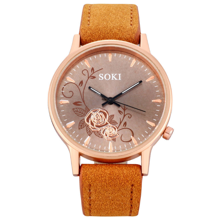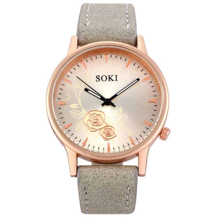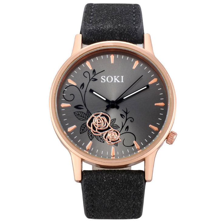 Simple temperament elegant fashion flower trend Korean student belt big dial watch