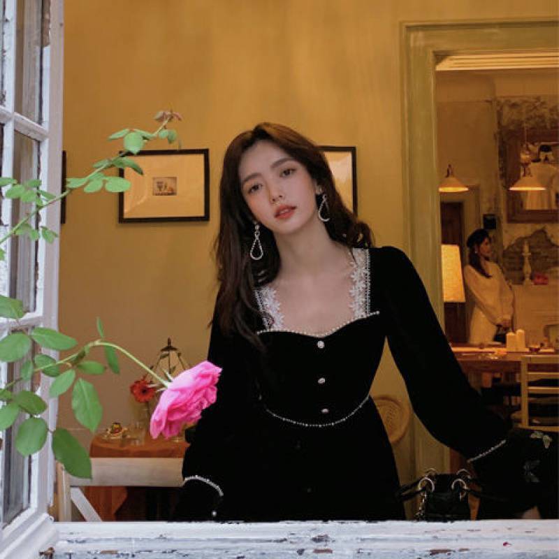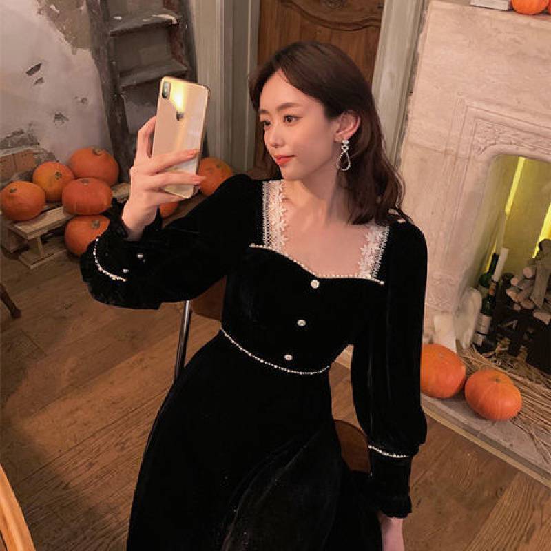 Color: velvet black dress, pure black dress (without flash)