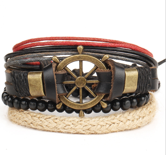 Vintage ship rudder leather bracelet hand-woven multi-layer male and female bracelets