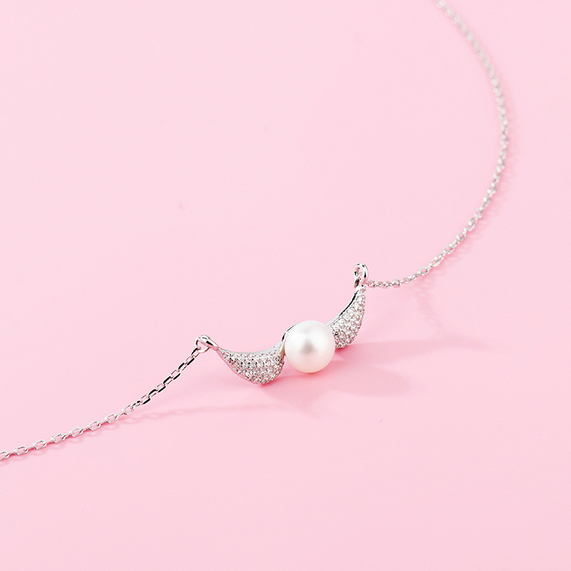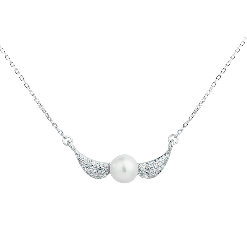 S925 Sterling Silver Jewelry Korean Fashion Zircon Inlaid Pearl Pendant Short Clavicle Chain Angel Wing Necklace Female