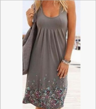 Long sleeved a-line dress in sleeveless loose printed tank top
