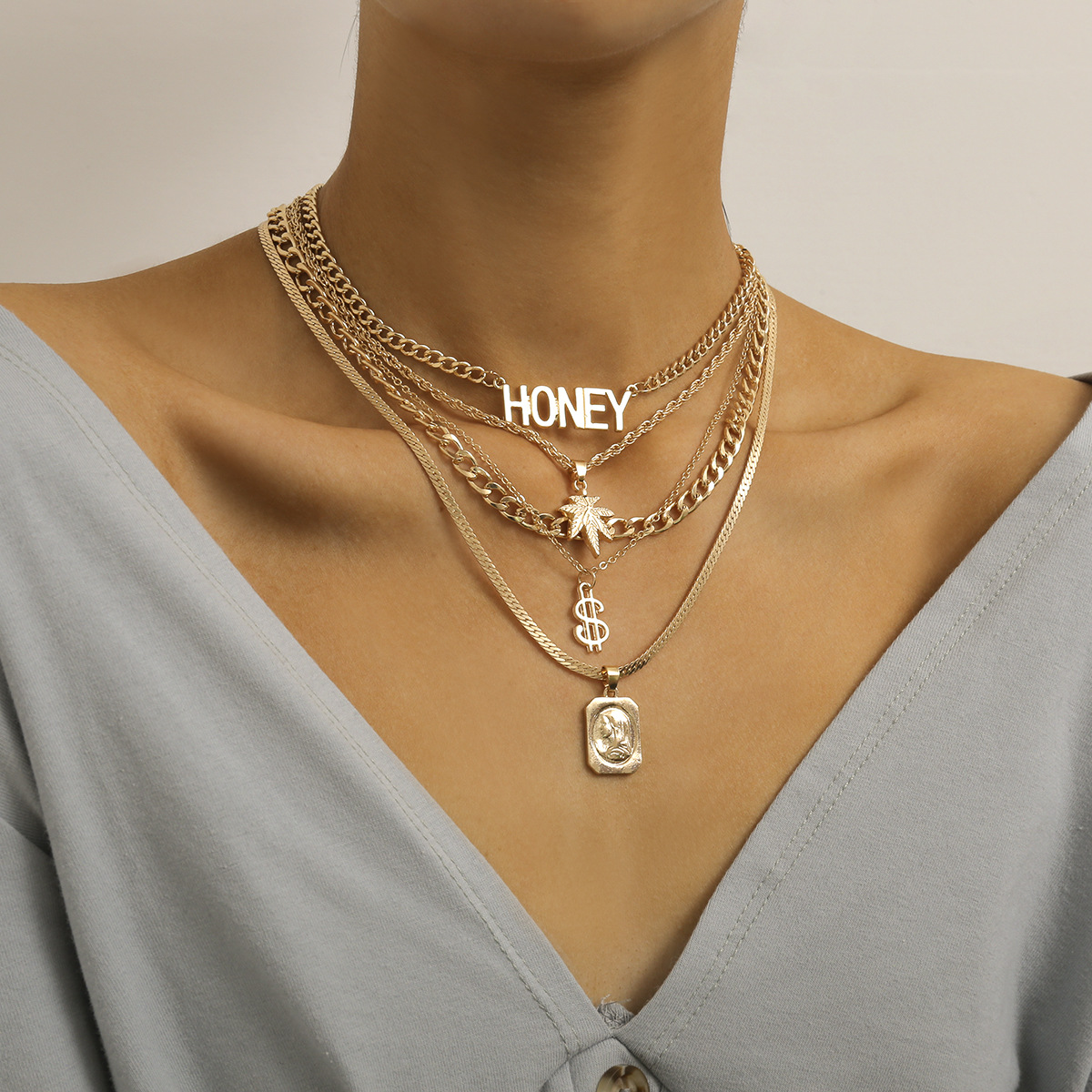 Style: SimpleMaterial: iron, copper, alloyType: NecklaceStyle: Women'sModeling: leavesChain style: snake bone chainExtension chain: 10cm or lessCircumference: 21cm (inclusive)-50cm (inclusive