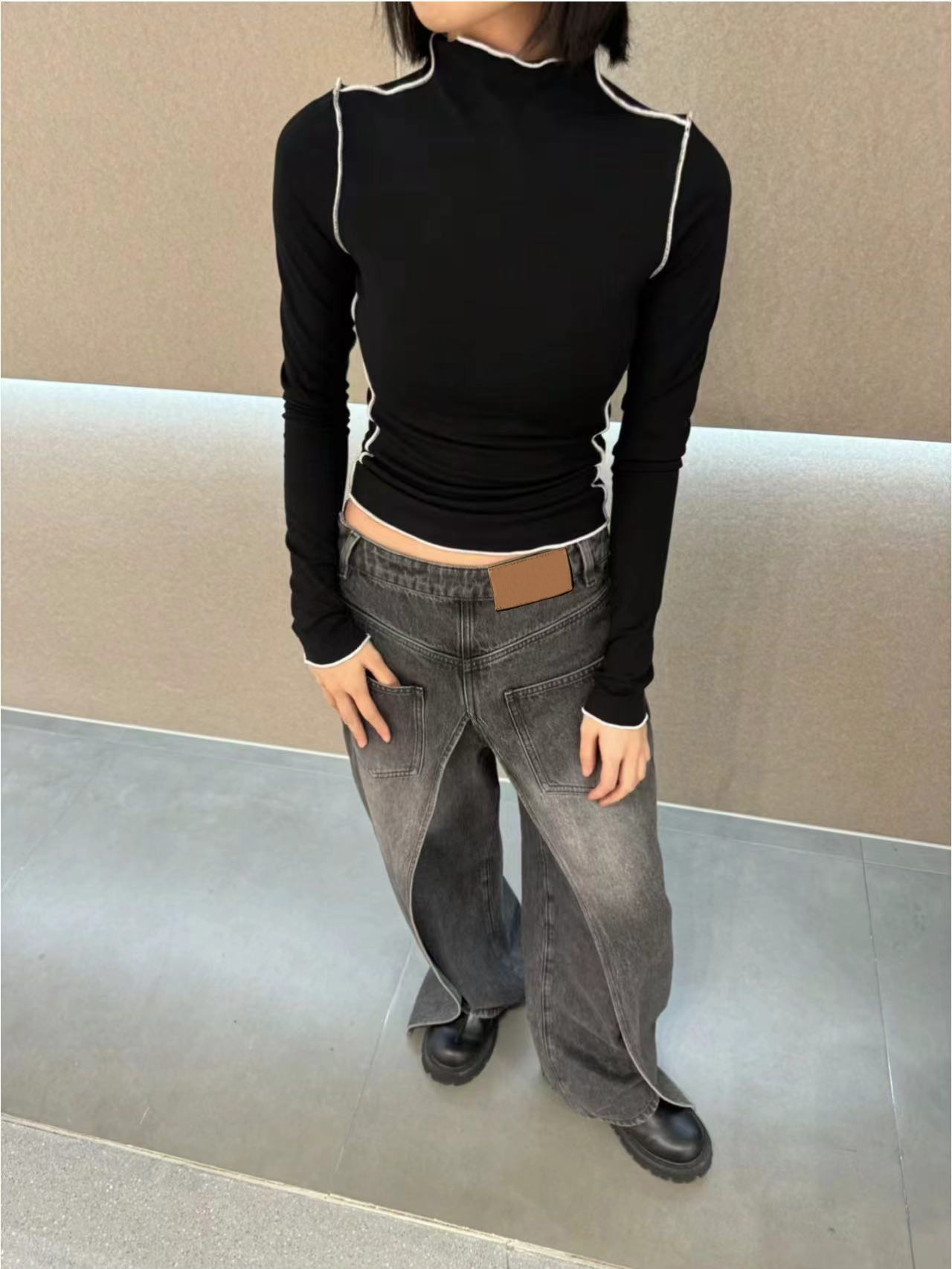 Reversible washed distressed jeans for women Deconstructed vintage banana pants