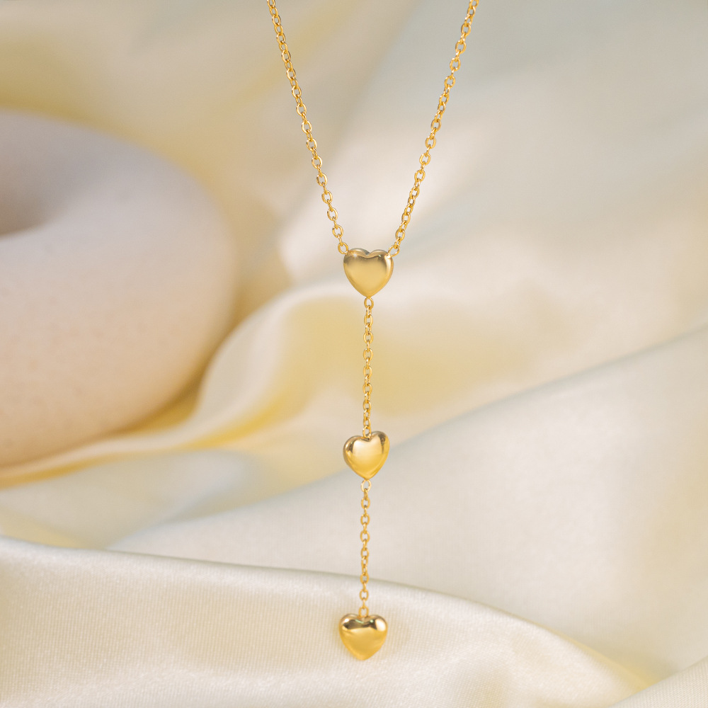 Color: QYH1211 three peach heart necklace gold