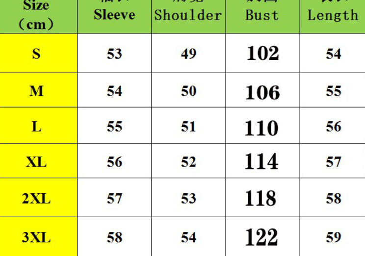 Size:S,M,L,XL,XXL,3XL unit:cm