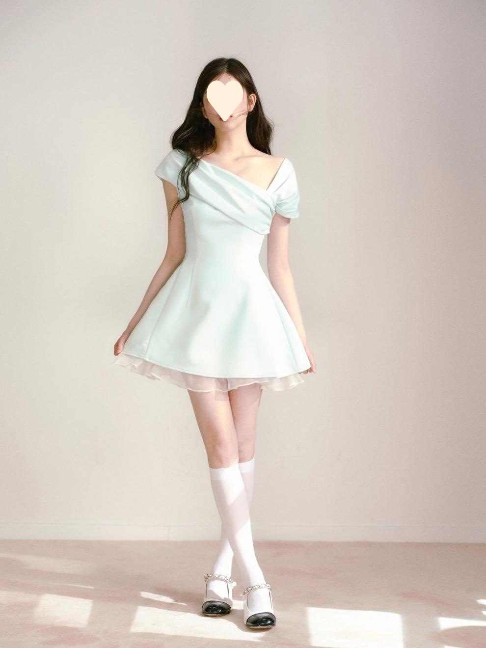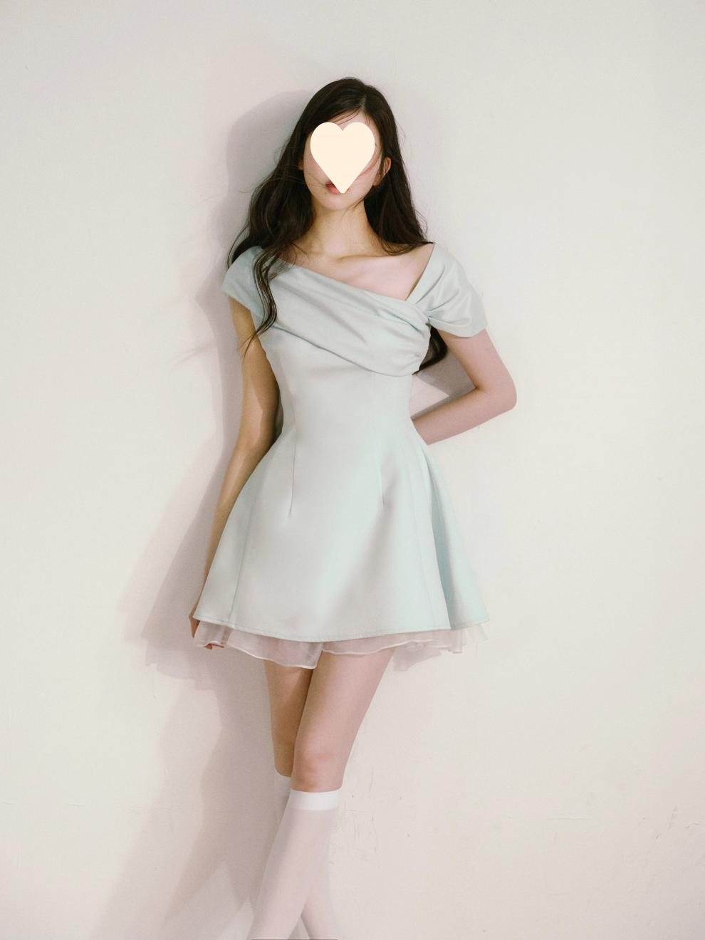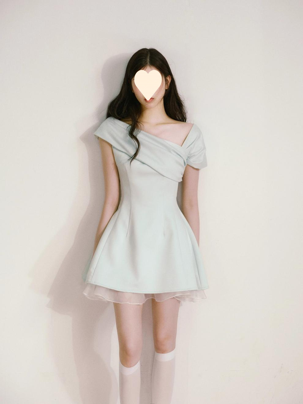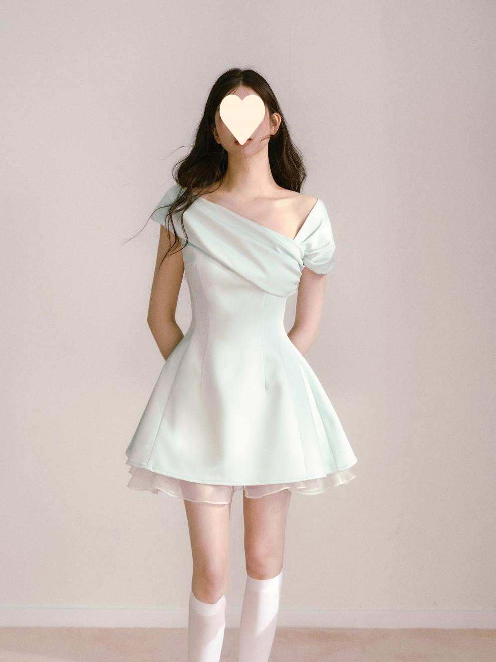 Product information: Fabric name: Polyester Skirt-type: umbrella skirt Color: light green Size: S,M,L Style type: fresh and sweet Popular elements: splicing Style: oblique shoulder style Style: cute style
