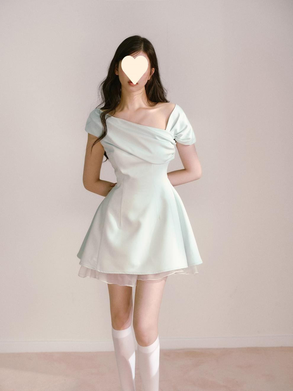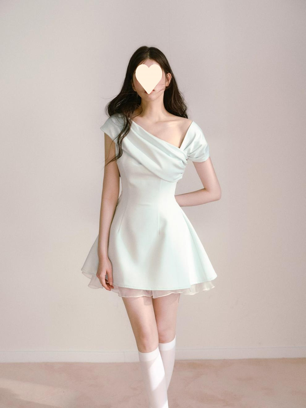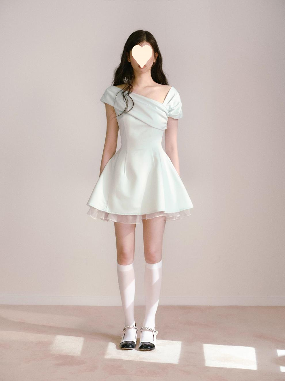 Product information: Fabric name: Polyester Skirt-type: umbrella skirt Color: light green Size: S,M,L Style type: fresh and sweet Popular elements: splicing Style: oblique shoulder style Style: cute style