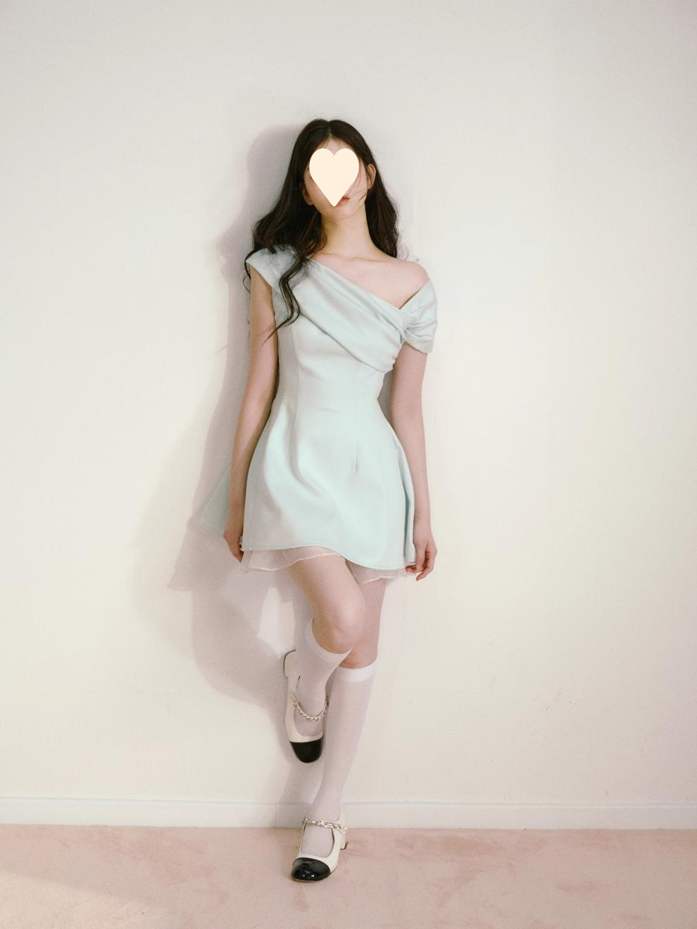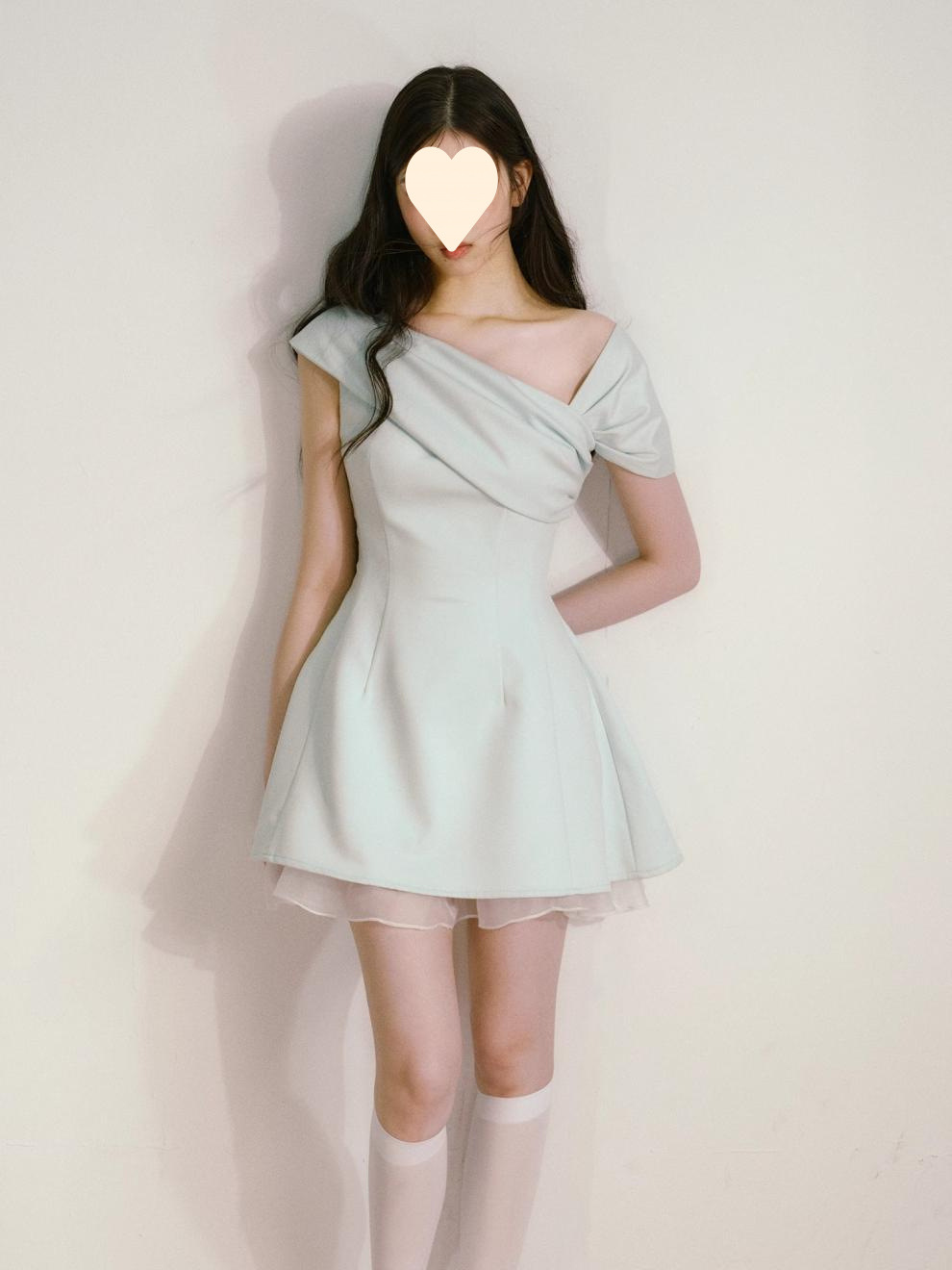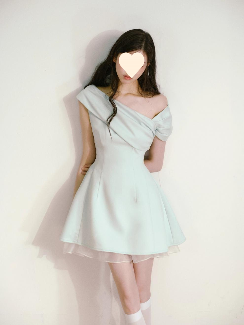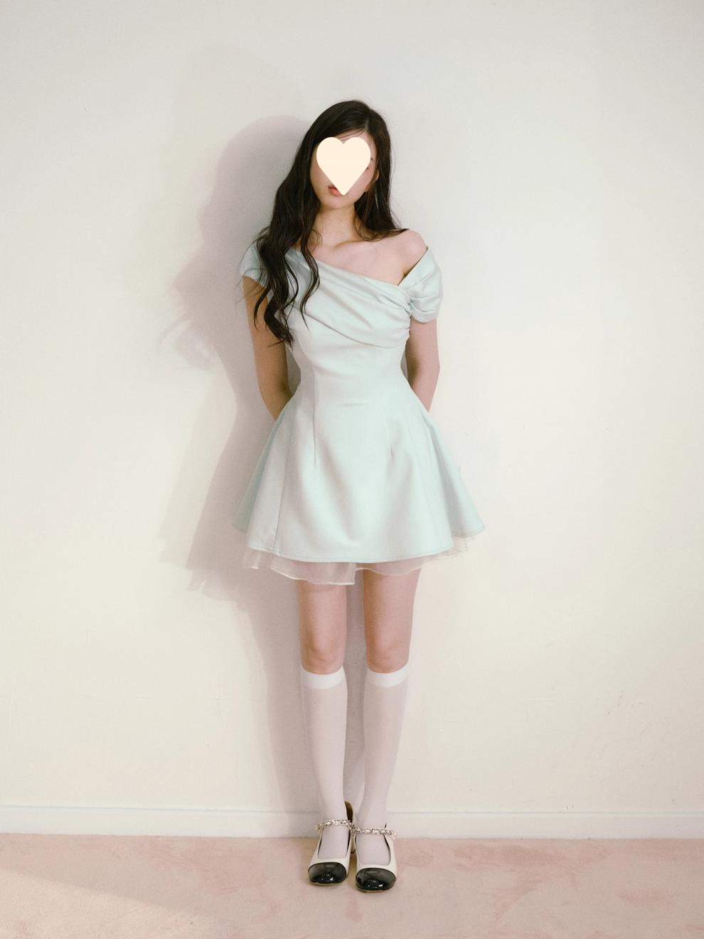 Product information: Fabric name: Polyester Skirt-type: umbrella skirt Color: light green Size: S,M,L Style type: fresh and sweet Popular elements: splicing Style: oblique shoulder style Style: cute style