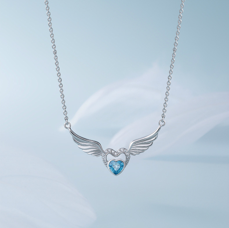 S925 Sterling Silver Angel Wing Necklace Female Clavicle Chain