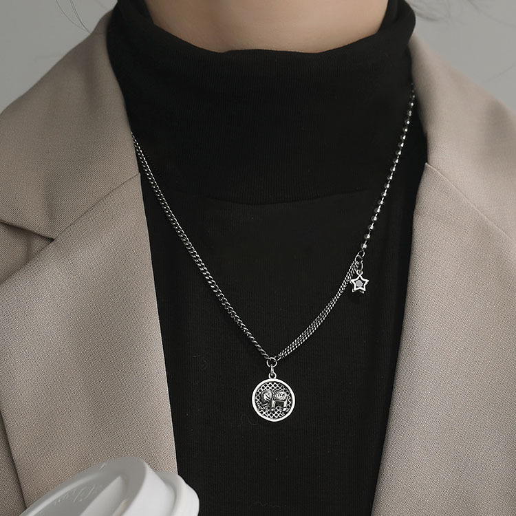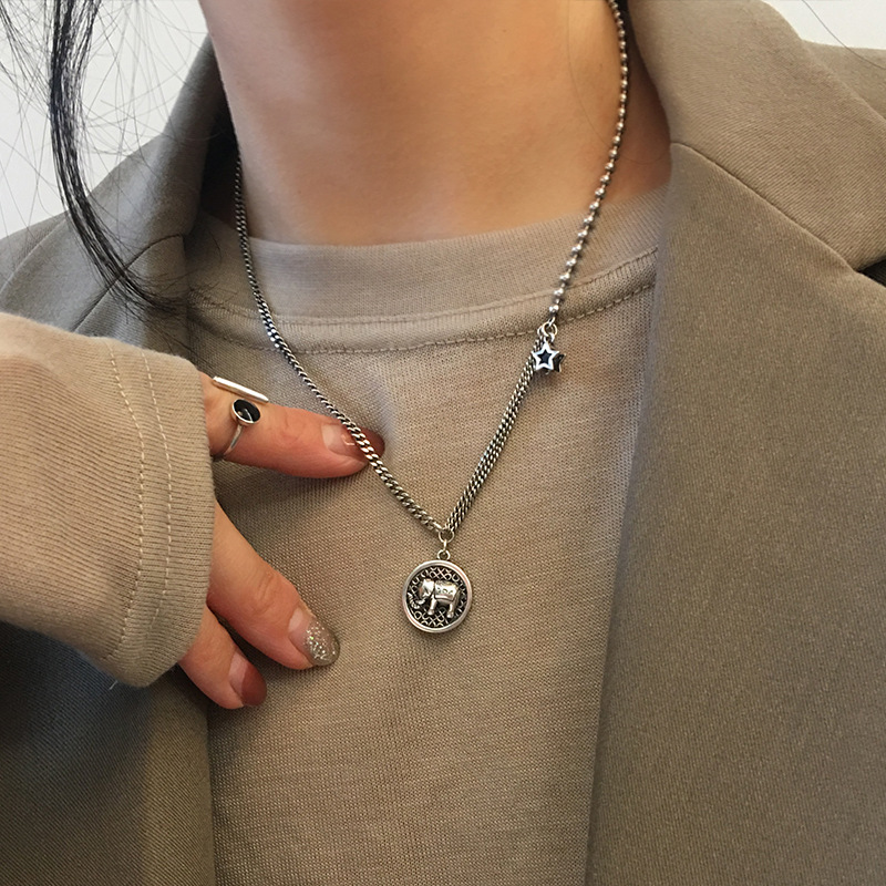Product information:Color: round elephant Applicable people: Unisex Pendant material: Alloy Chain style: clavicle chain Material: titanium steel Modeling: animal/Zodiac Perimeter: 21cm (inclusive)-50cm (inclusive) Chain: 45+5cm