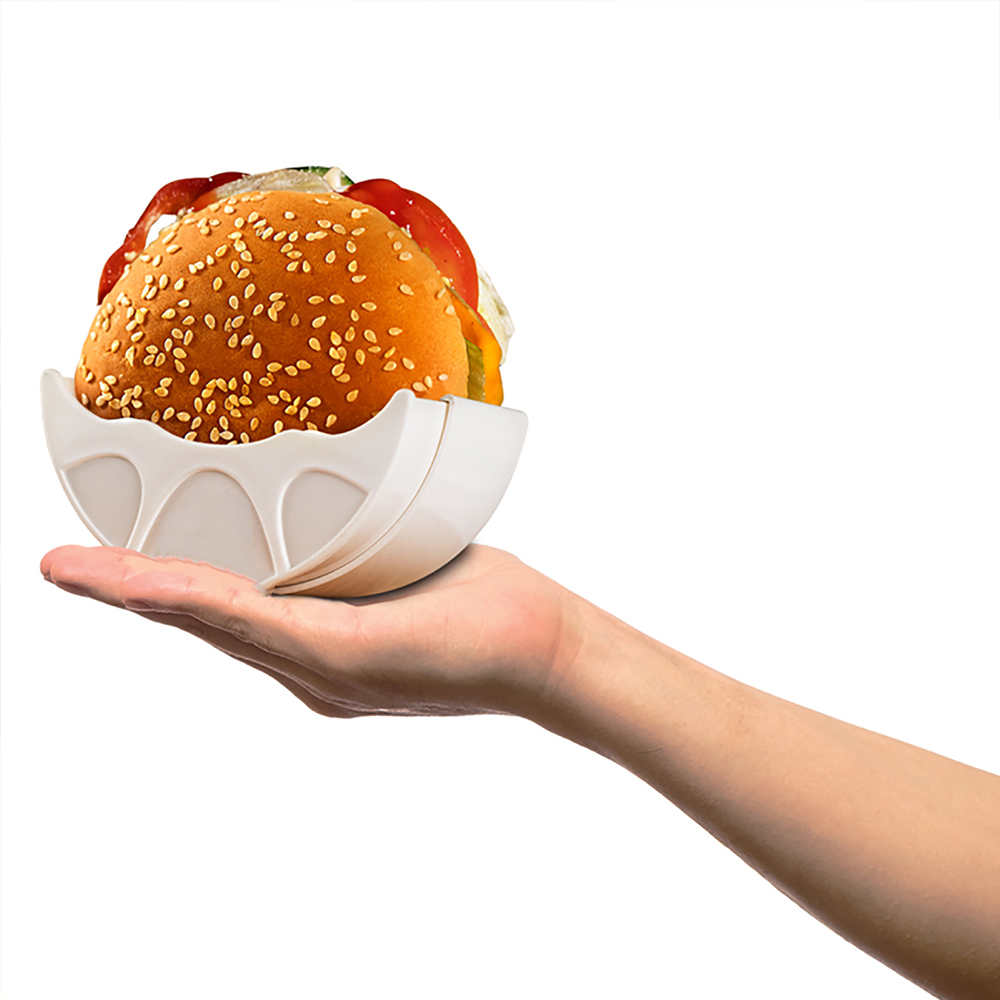 When eating a hamburger, there is no need to oil your hands or clothes.