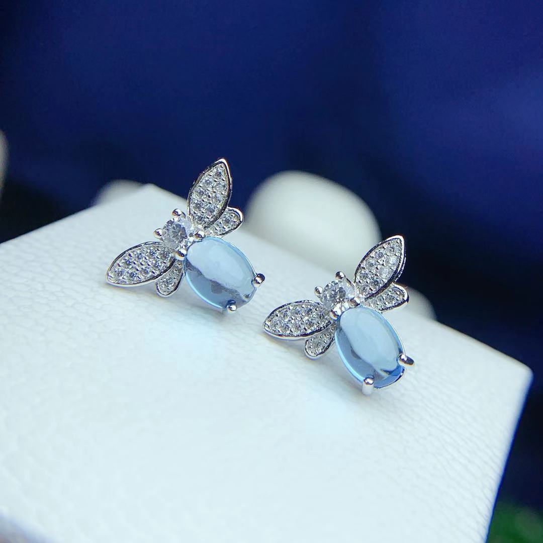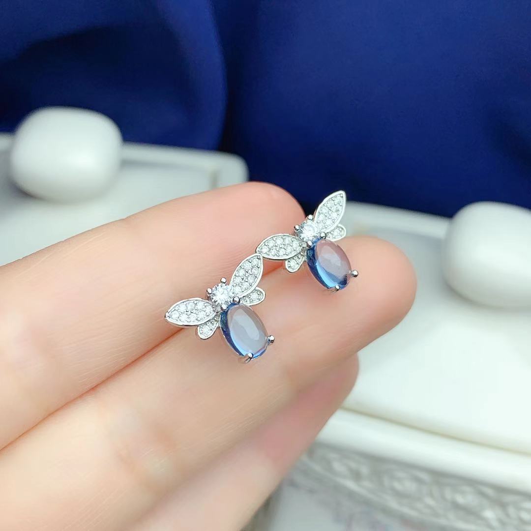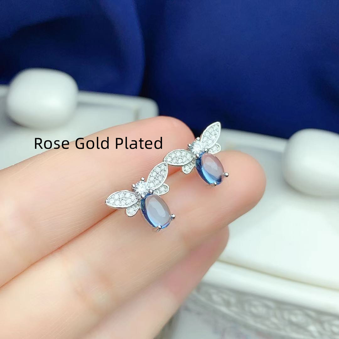 Product information:Treatment Process: Electroplating Color: white gold plated, rose gold plated Series: ear studs Material: Blue Topas ear studs Shape: Geometry Popular elements: None Size: main stone 5/7mm
