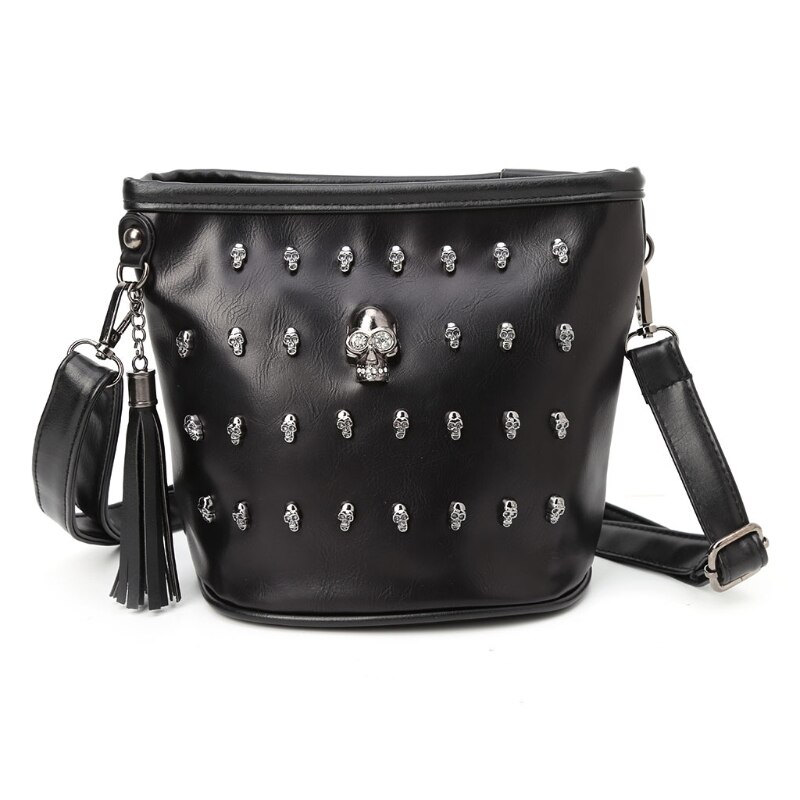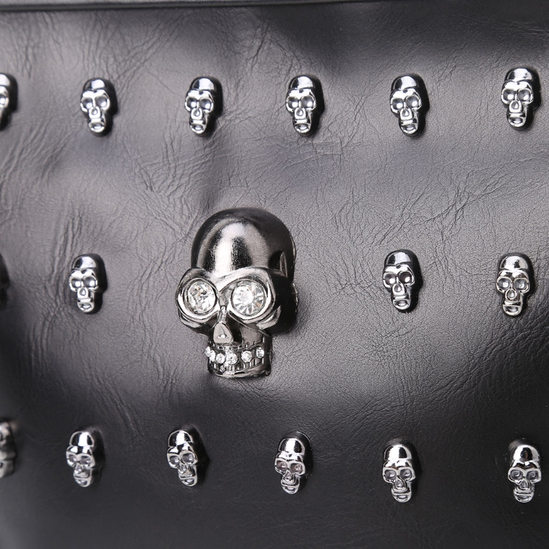 Fabric texture: PULining texture: polyesterBag shapes: square vertical sectionTrendy Bags Style: SkullOpening method: zipperPopular elements: rivetHardness: medium to softLifting parts: soft handleSize: 22*17*12cm
