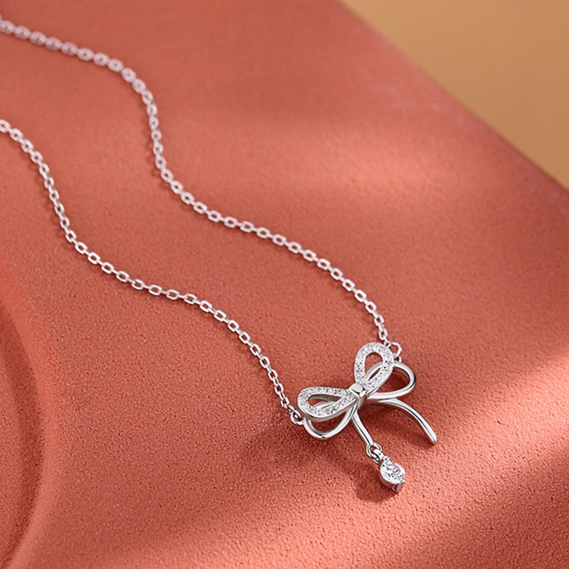 Product information:Treatment Process: Diamond Color: bow necklace Chain style: O-ring chain Size: total length is about cm, extension chain is about 46cm; Pendant is about 12 * 14mm Material: Silver Purity: 925 silver