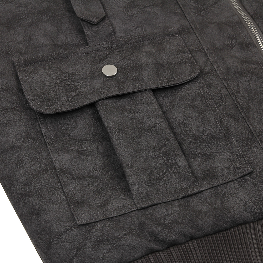 Product information: Pocket Style: size stick pocket Color: dark gray, khaki Size: M,L,XL Leather classification: PU Hem design: straight hem Style: Street Process: non-ironing