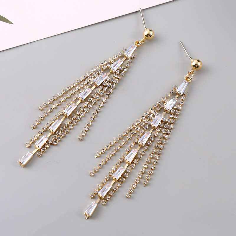 High-grade Zircon Earrings Tassel Long Face-looking