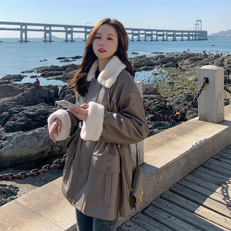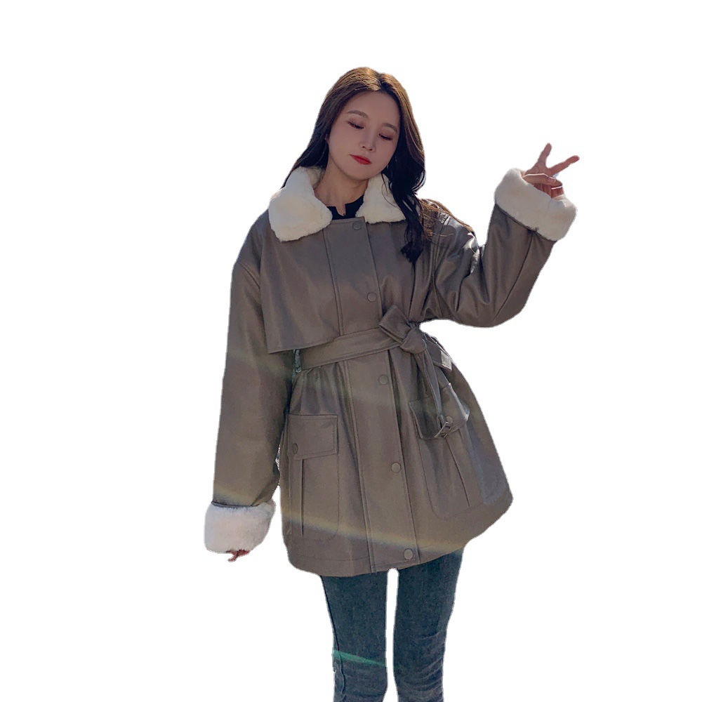 Plus Velvet Women's Mid-length Thickened Waist Loose Coat