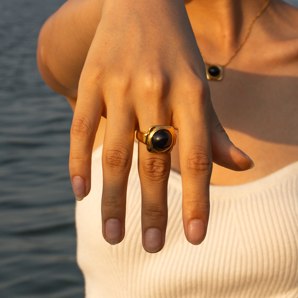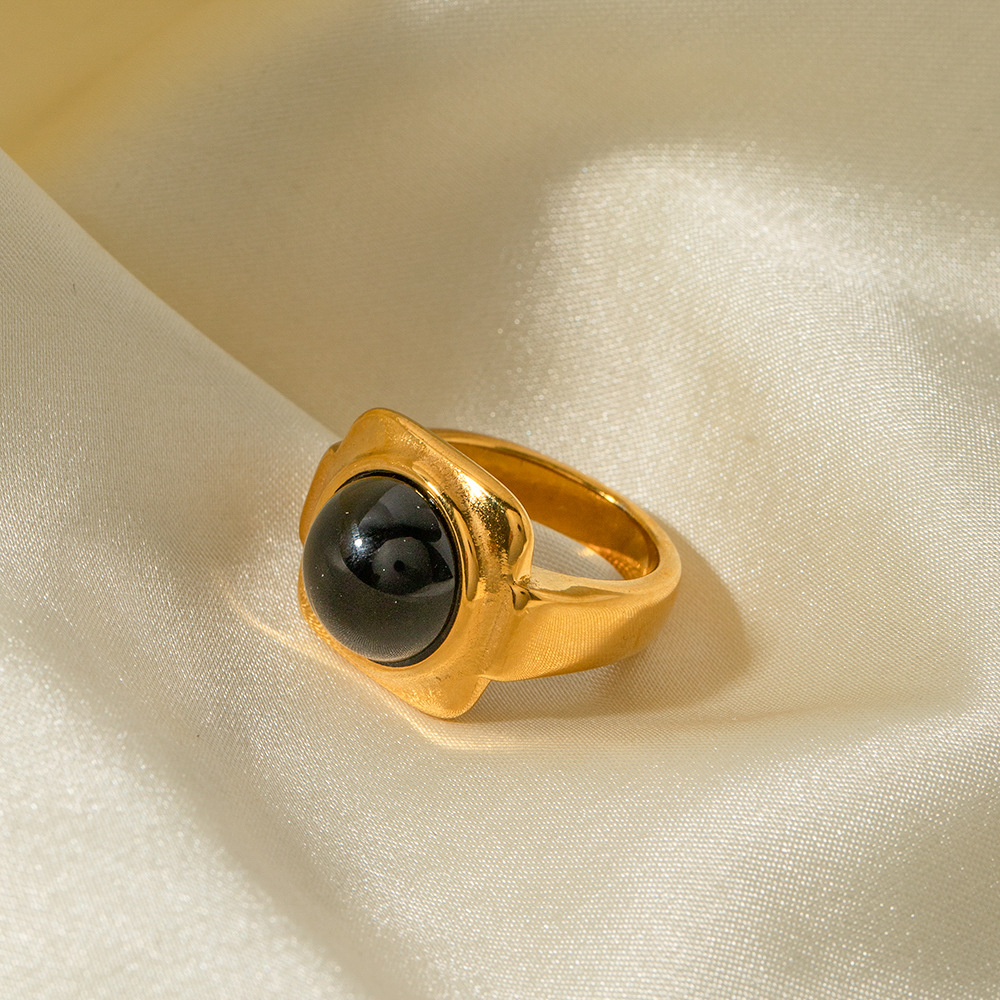 18K Gold Stainless Steel Square Inlaid Closed Ring No 7